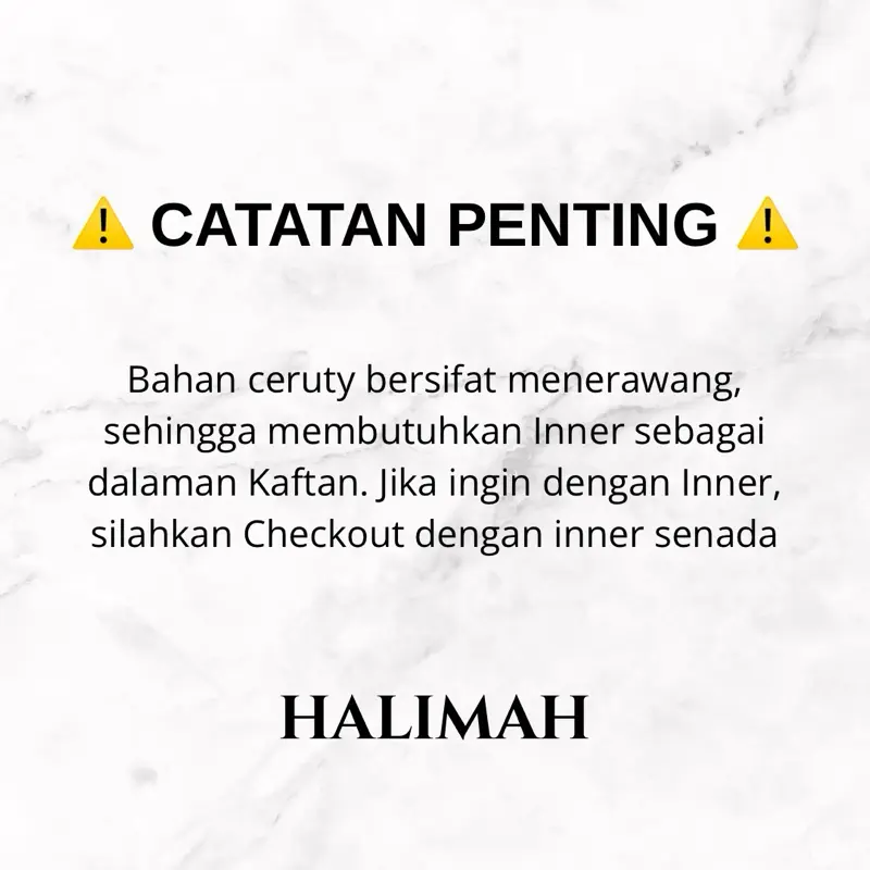 โข Jika checkout pada varian โ Dengan Inner Senada โ warna inner akan disenadakan dengan warna abaya kaftan