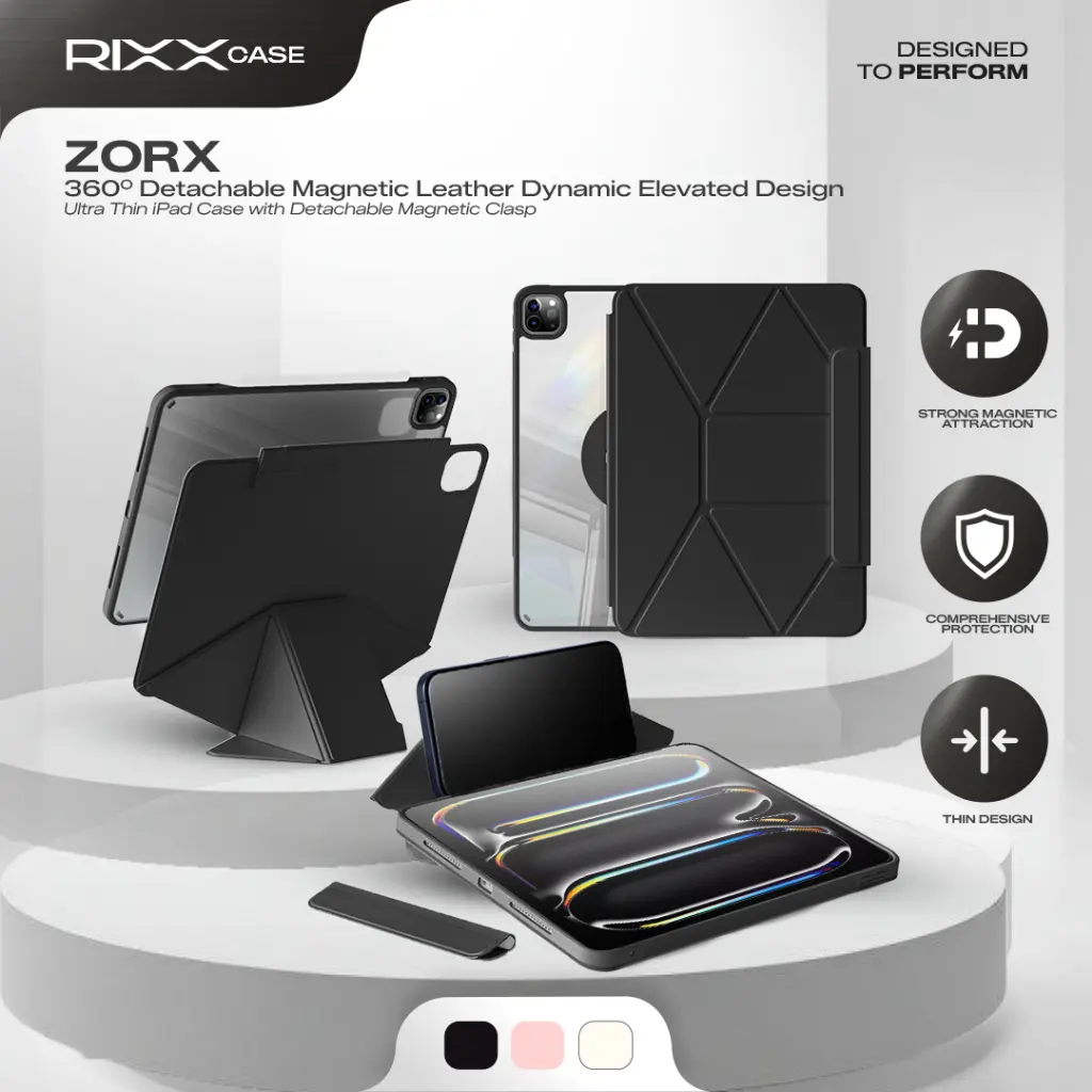 RIXXCase ZORX 360° Detachable Magnetic Leather Dynamic Elevated Design Case with Detachable Magnetic Clasp Hybrid Case Compatible for iPad Mini 6 / iPad Gen 10 10.9" / iPad Air 5 10.9" / iPad Air 6 11" / iPad Pro 11" 2021 / iPad Pro 11" 2024