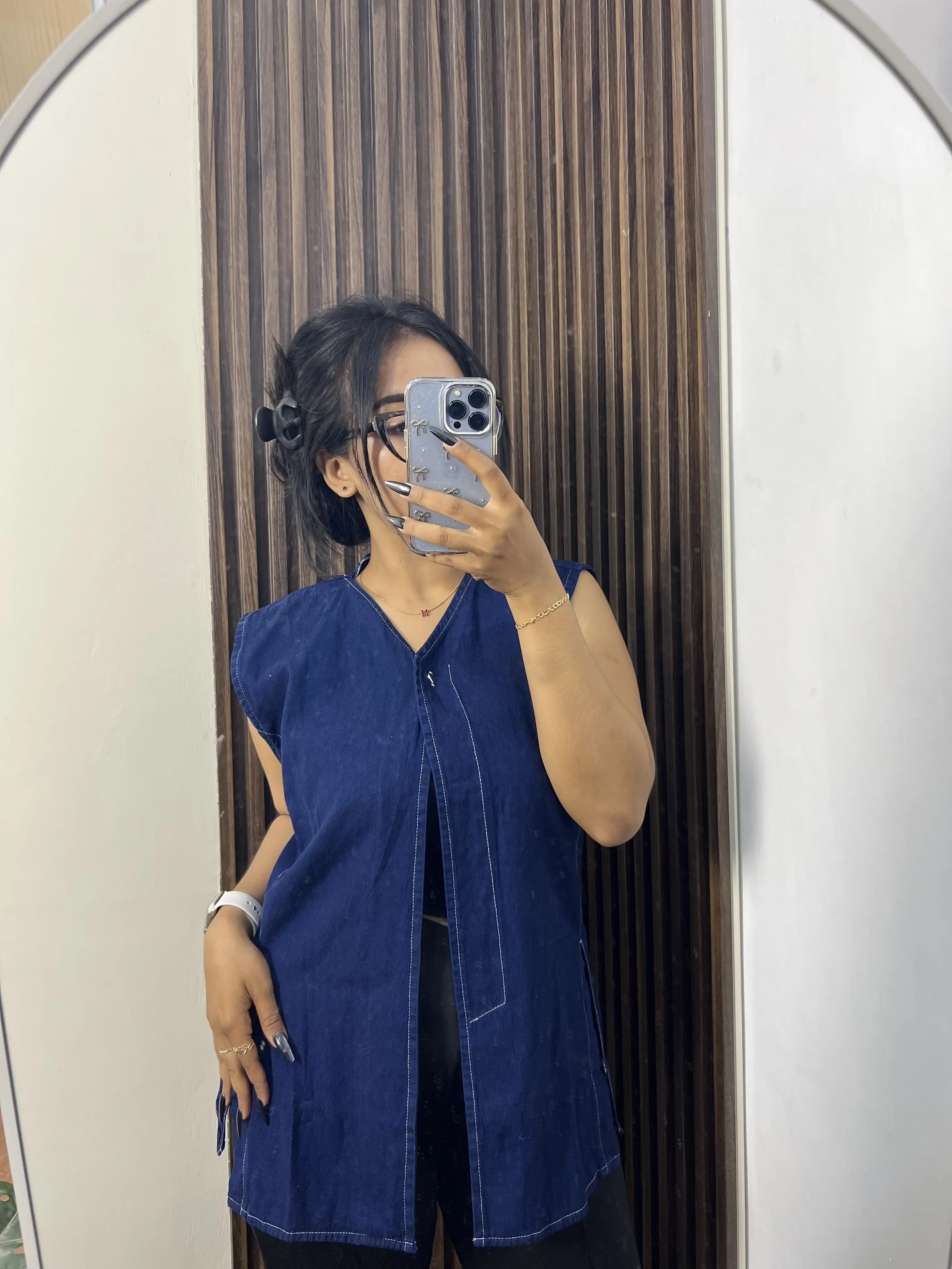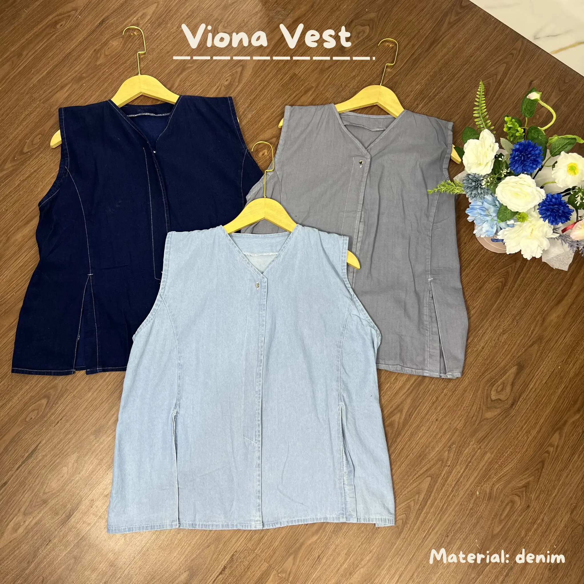 Ā·Viona vest denim : Vest tanpa lengan berbahan denim cocok untuk gaya casual yang memberikan kesan edgy dan berkarakter pada penampilan anda , dengan desain yang simple stylish tapi timeless.