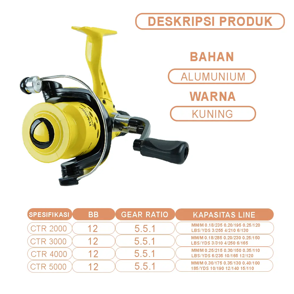 Reel Pancing Putaran Halus Varian 4 Ukuran Aluminium Plastik CTR 2000-5000