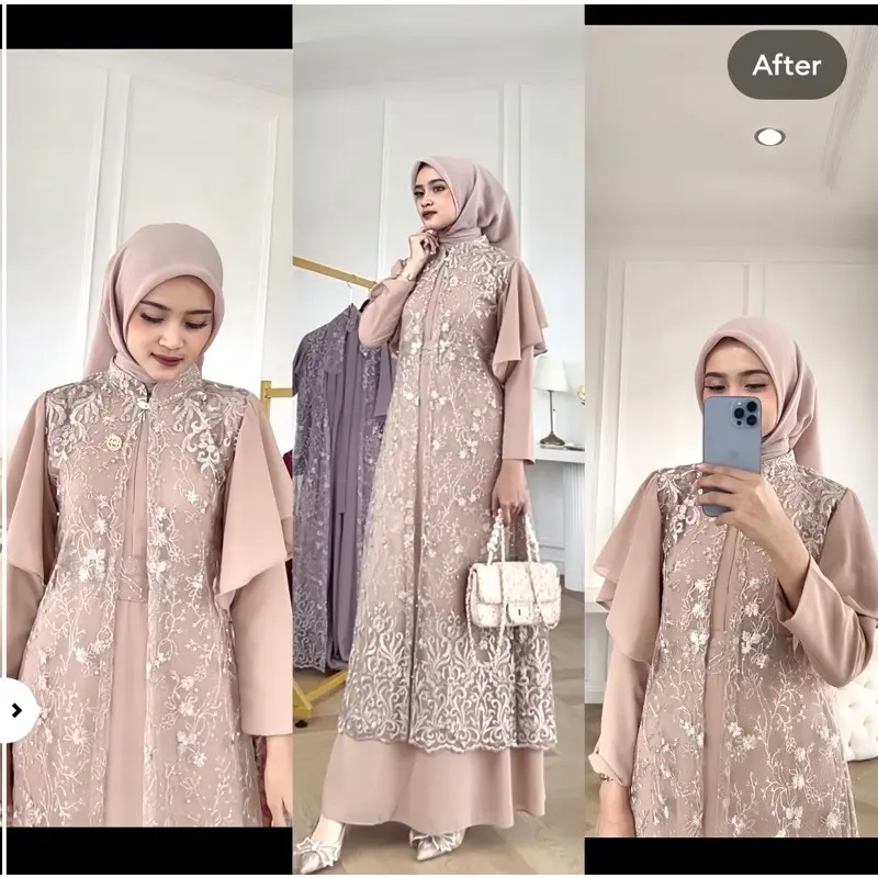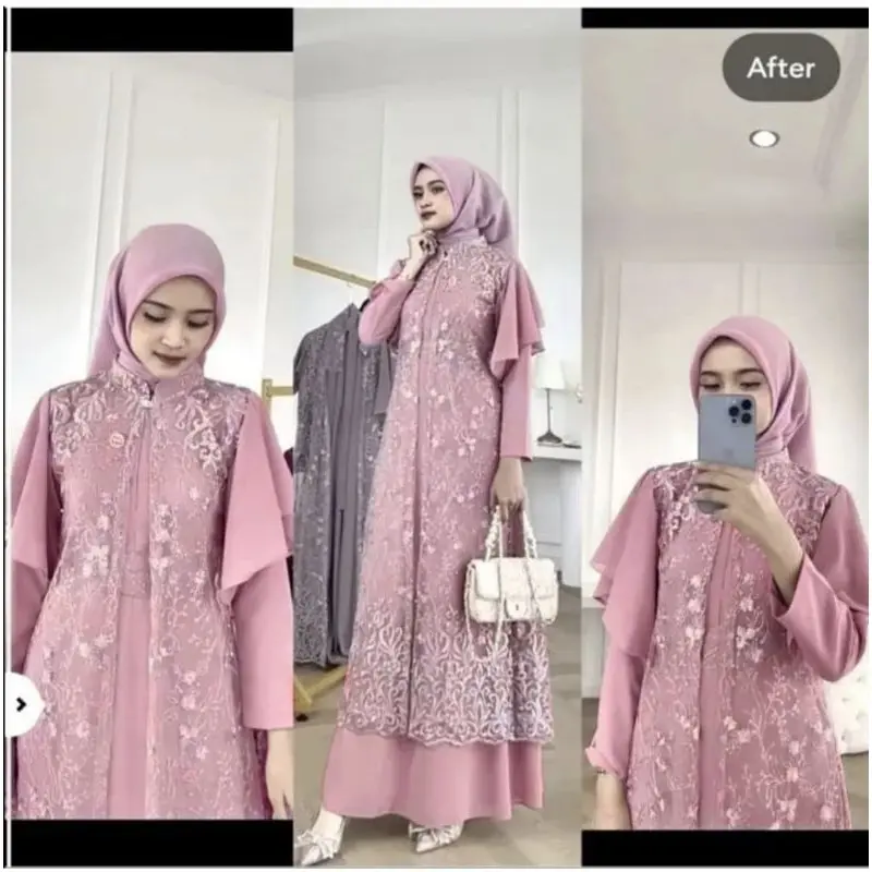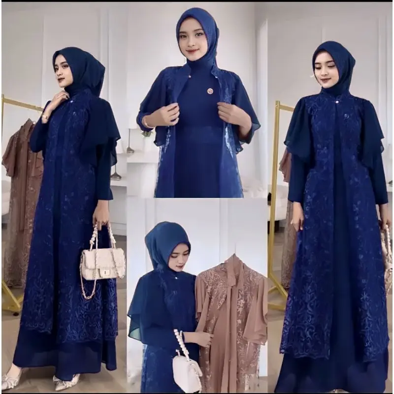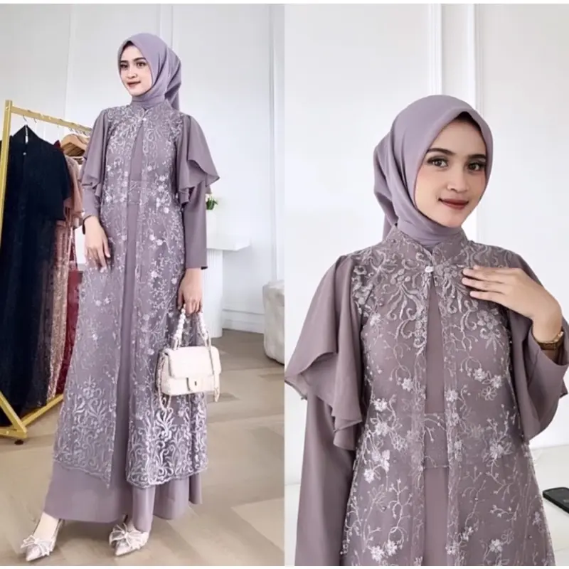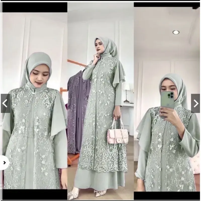 ceruty Baby doll premium sudah lapis furing, kombinasi outer / rompi brukat tule bordir import lepasan