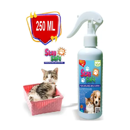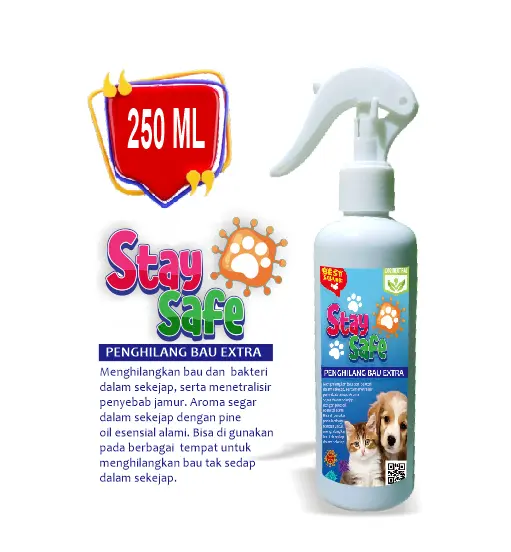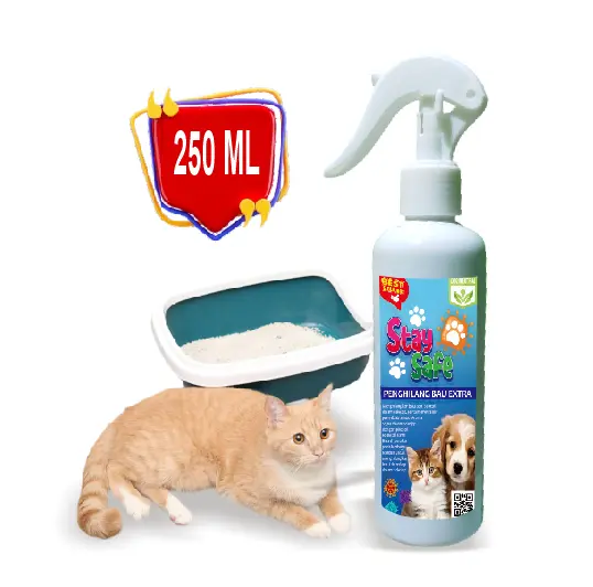 Spray Stay Safe Penghilang Bau kandang Untuk Hewan Peliharaan 250ml Kotoran Kucing Plus Disinfektan