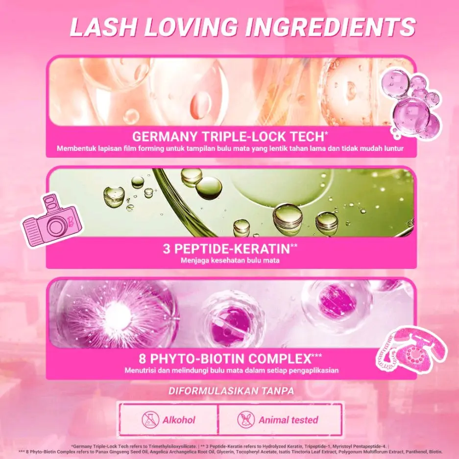 Membentuk lapisan ringan dan fleksibel yang membantu mengurangi kerusakan terlihat, kerapuhan, dan kerontokan pada bulu mata akibat pemakaian maskara.