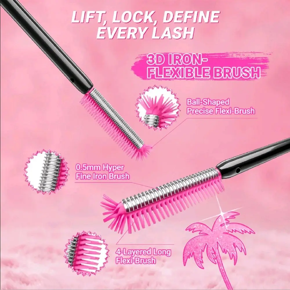 Desain sikat tiga dimensi inovatif untuk hasil bulu mata terangkat, bervolume, dan presisi yang dapat disesuaikan.