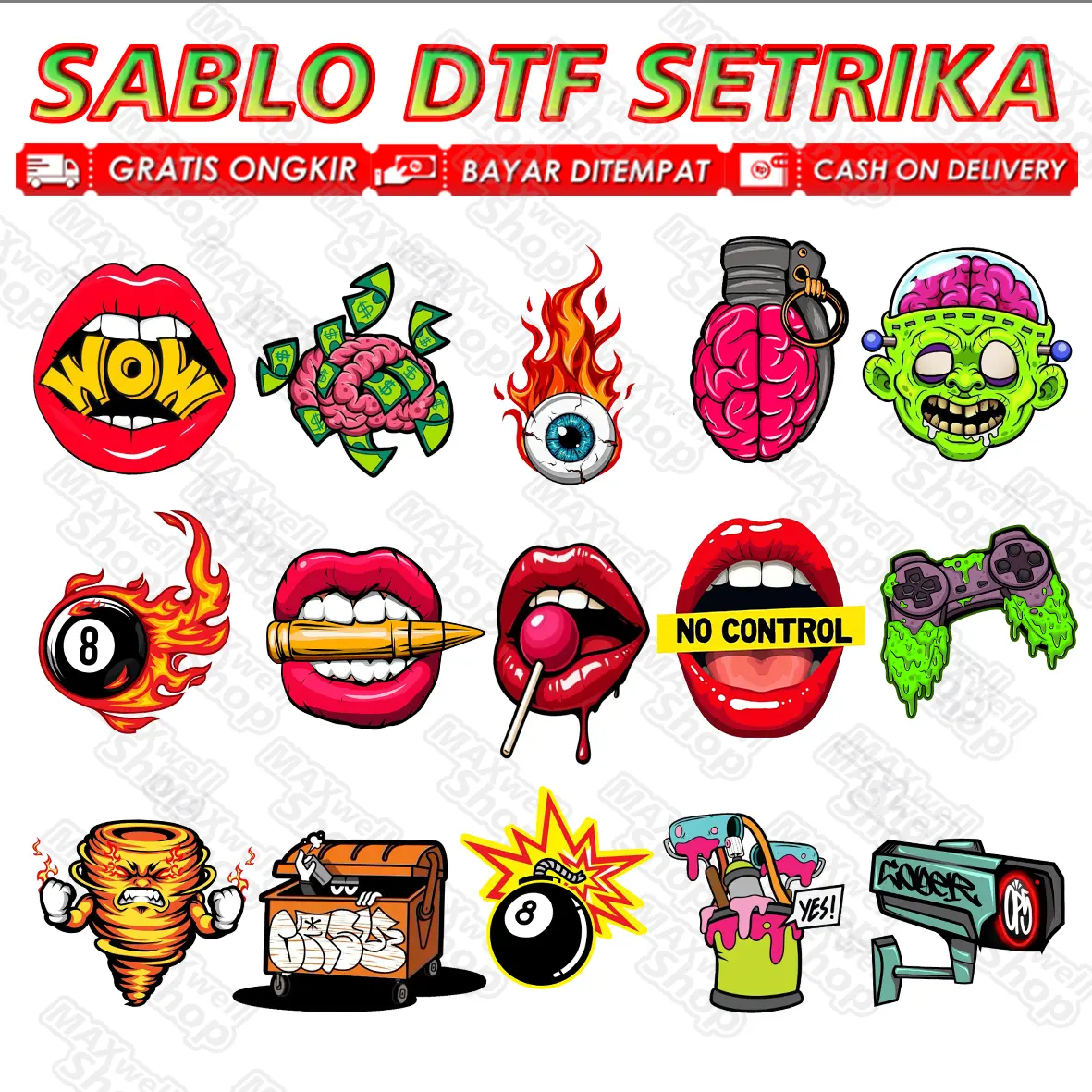 Sablon DTF tema random logo 8-10 cm (Panjang kebawah mengikuti proporsi gambar)