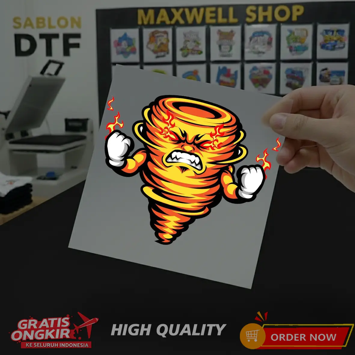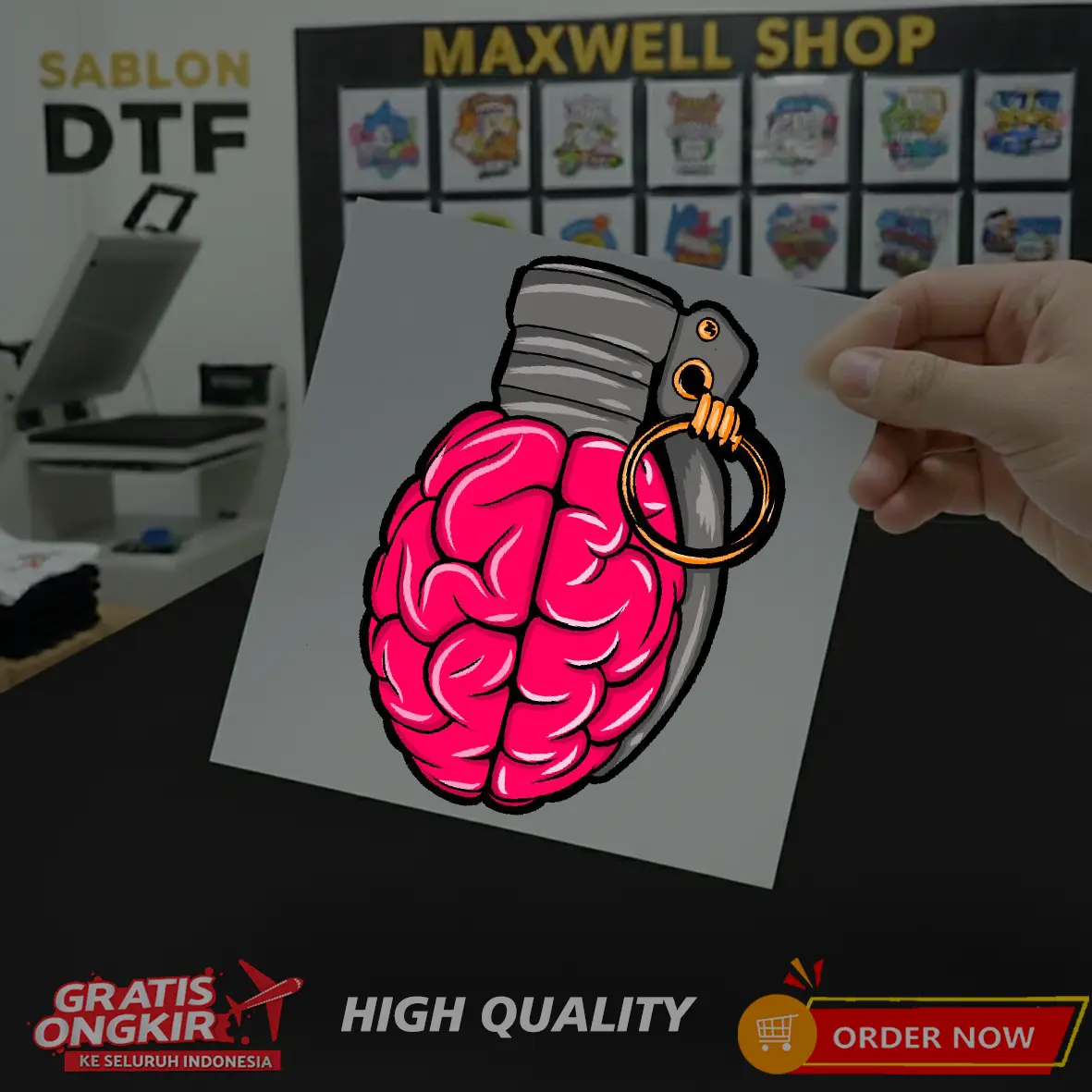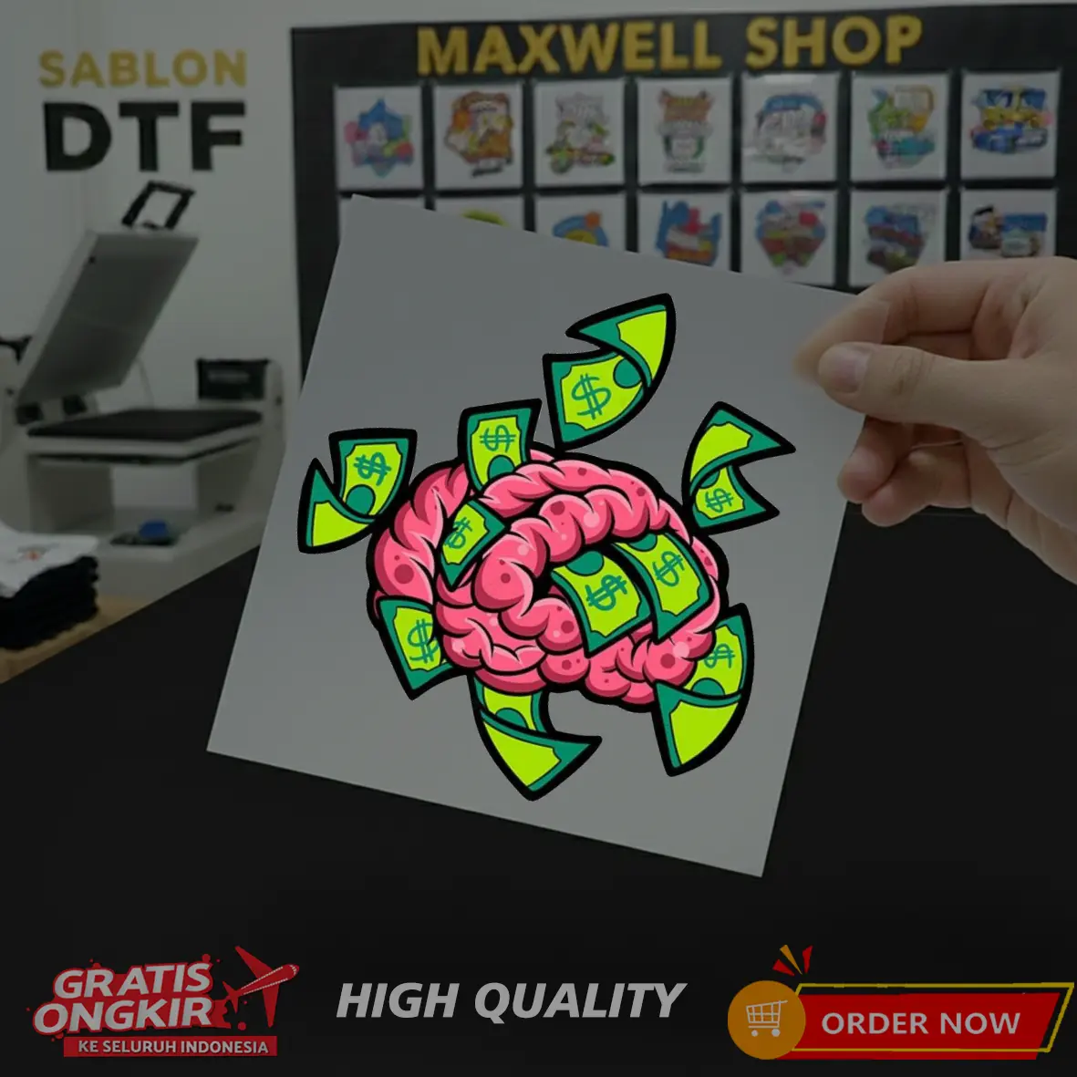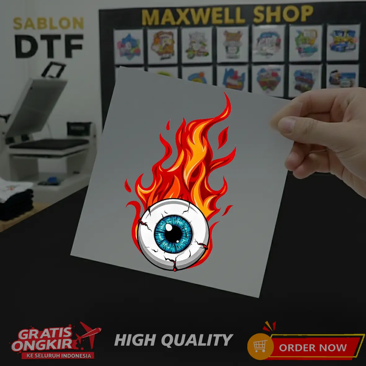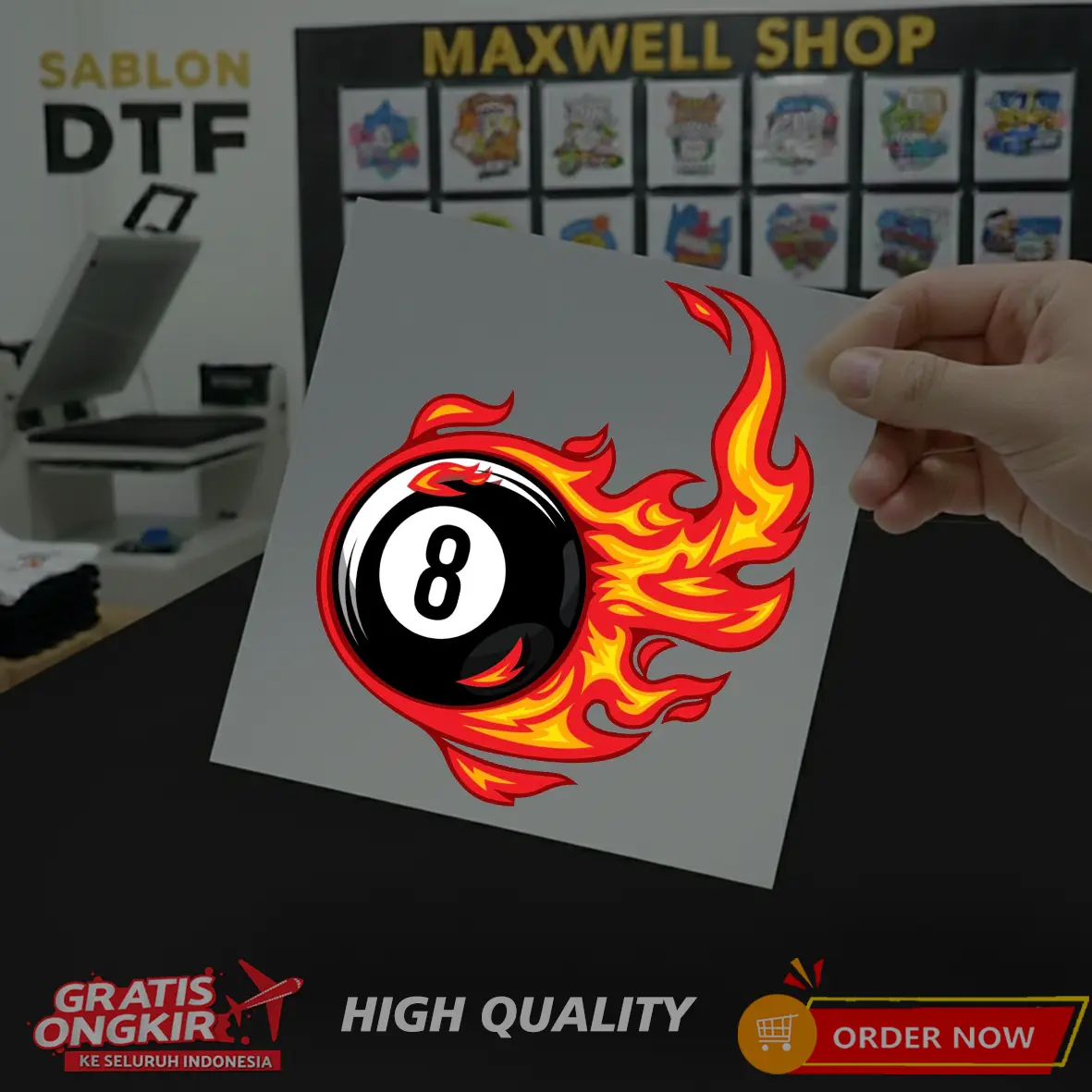 Kami tidak langsung press di kaos ya, jadi produk yang diterima nanti hanya berupa PET Film, dan bisa dipress sendiri.