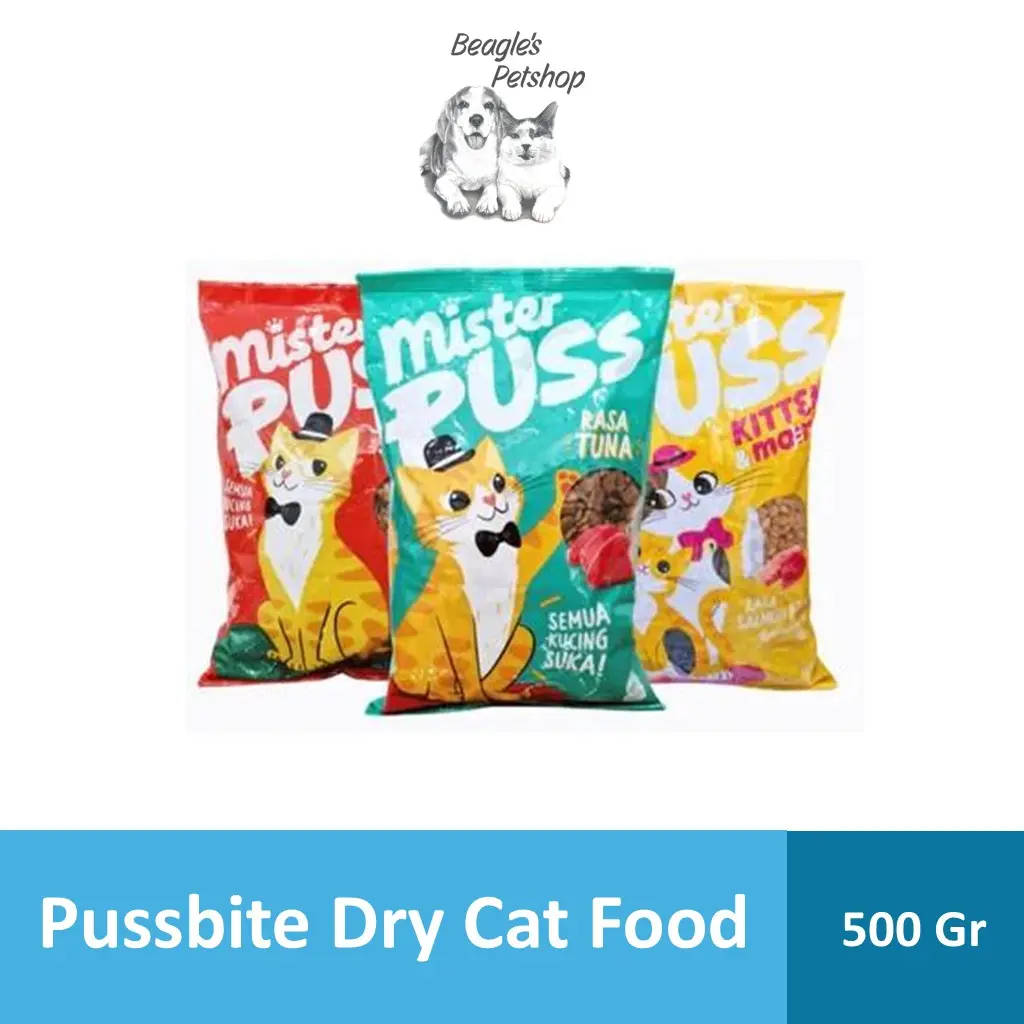 Mister puss 500gr Makanan kucing kering - 3 Pilihan rasa (Salmon, Tuna, Kitten and mama) - Bentuk kibble ikan - Kemasan freshpack 500gr - Tidak mengandung babi - Daya cerna tinggi - Cocok untuk semua jenis kucing