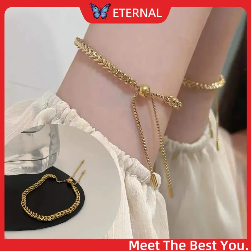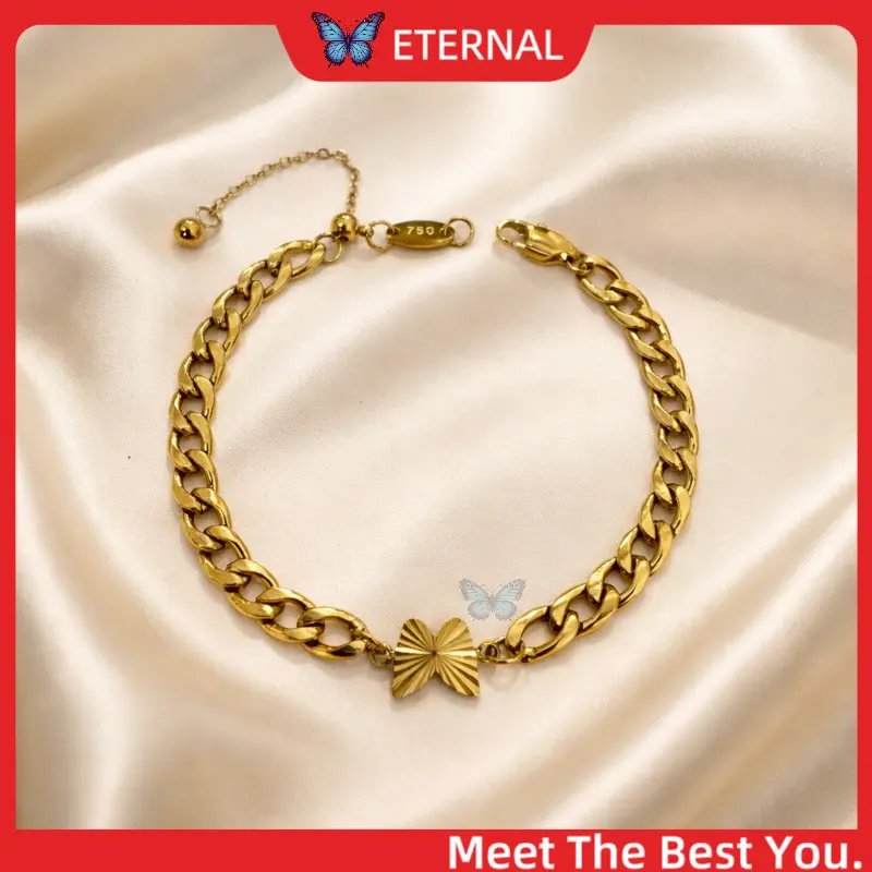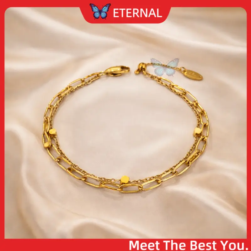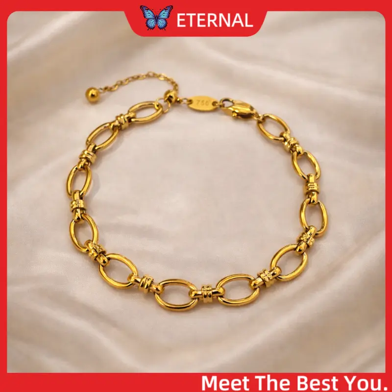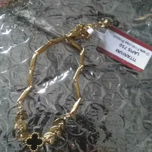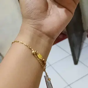 Apakah gelangnya mudah menghitam dan berkarat? Tidak, karena bahannya Titanium With 18K Gold Plating steel.