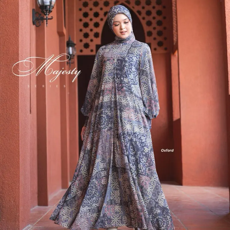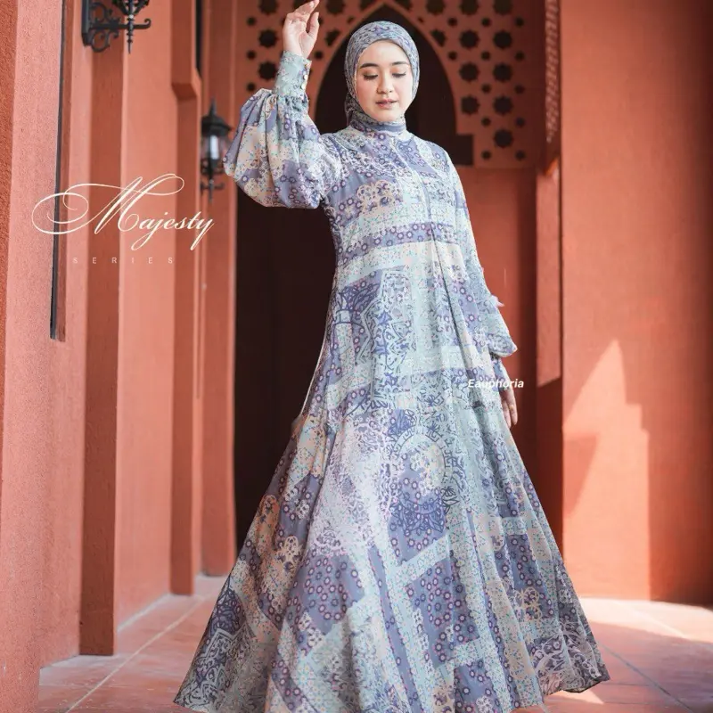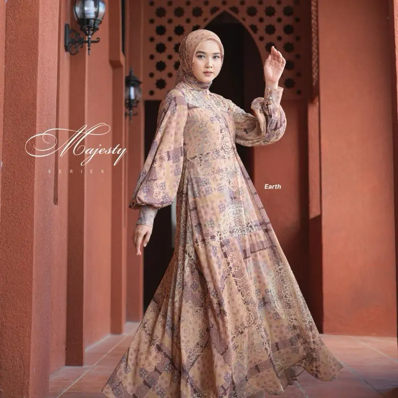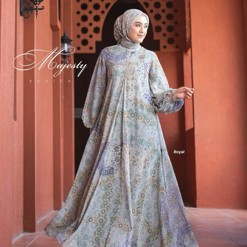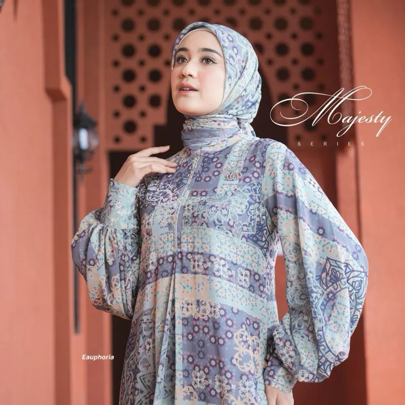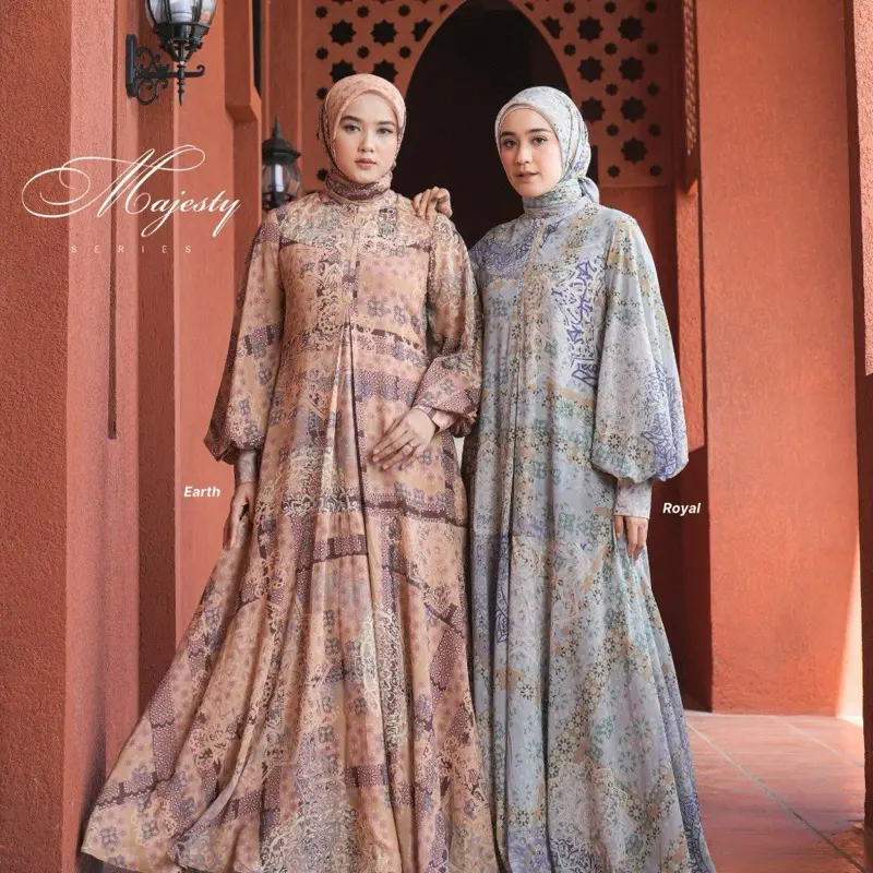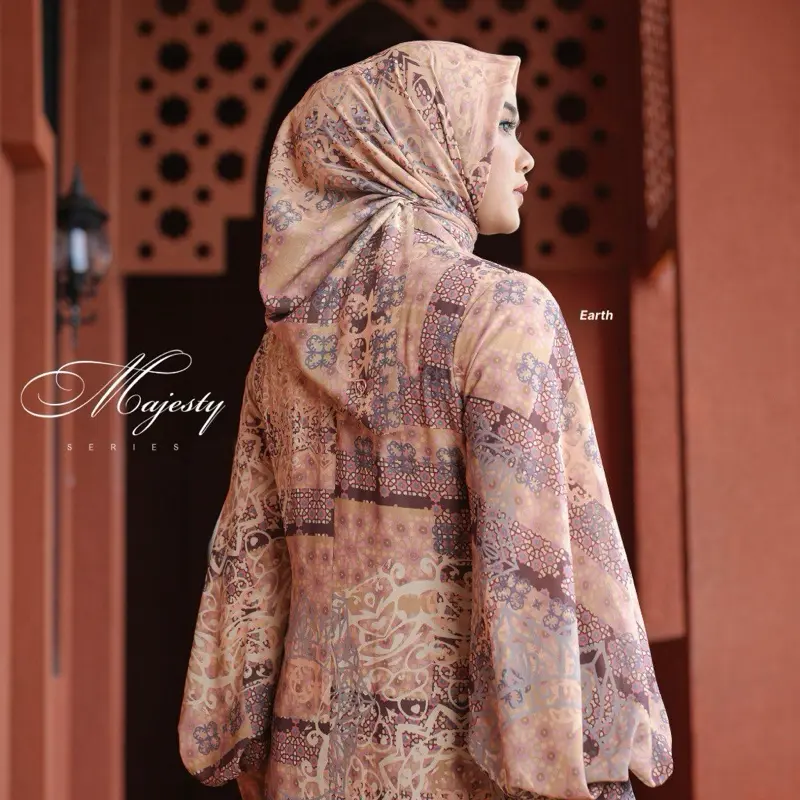 Keagungan dan Kemegahan dari Islamic Royal Family, terkenal dengan patternnya yang sangat indah daan khas padat bermaknanya. Majesty Series jika dikenakan akan menghantarkan energi positif yang sangat kuat melalui setiap helai benangnya. Menggambarkan perempuan independent, mampu mempengaruhi orang dan berwibawa.