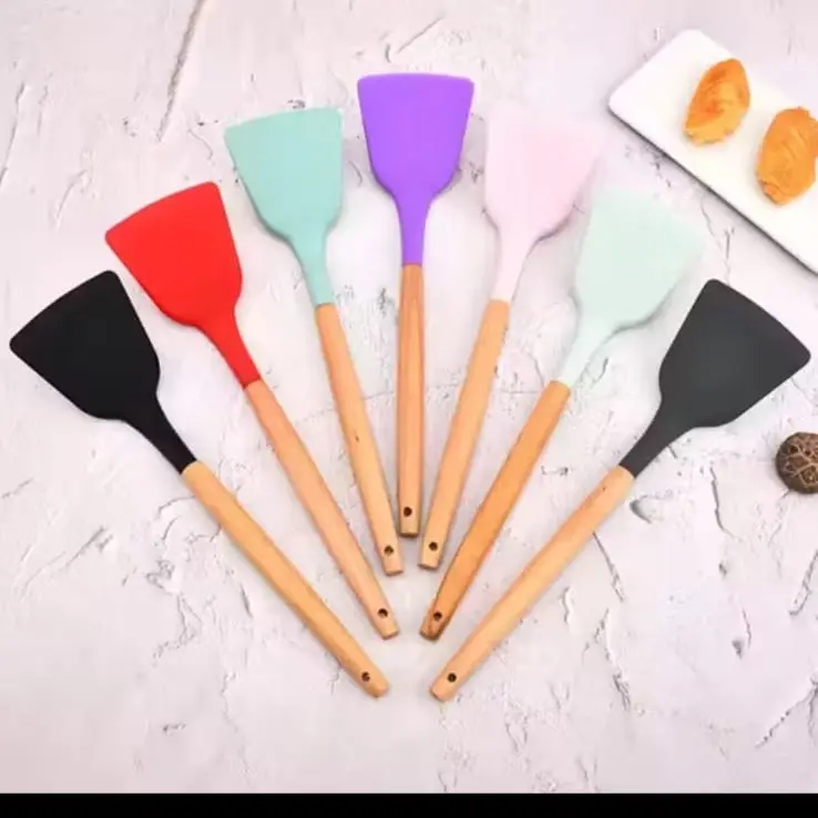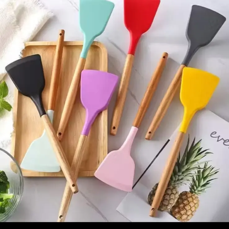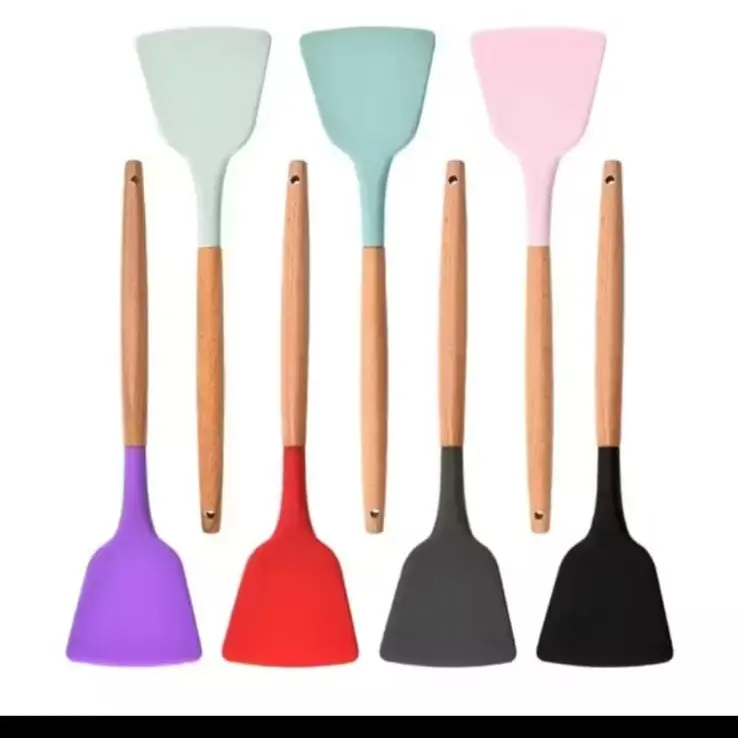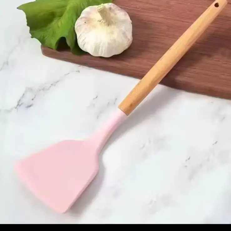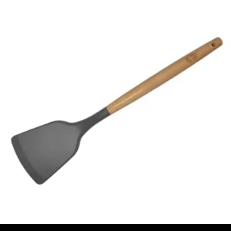 Silicone Utensil Gagang Kayu Tahan Panas / Spatula Silicon / Utensile Turner Sutil Silikon