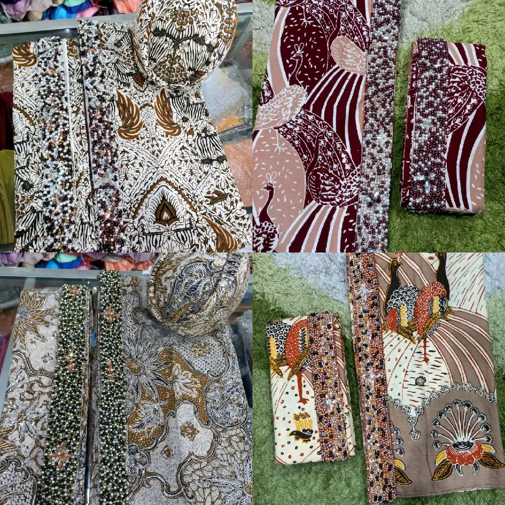 5. Kain / Jarik Alusan Polos di Wiru + Payet ( 1 set + blangkon )