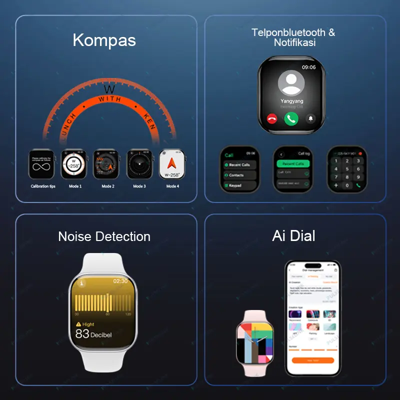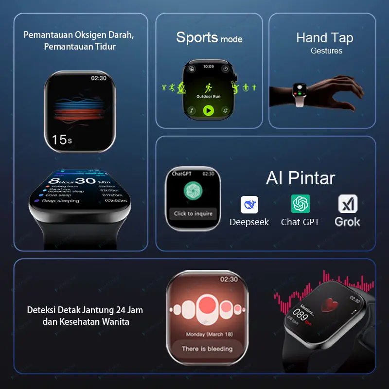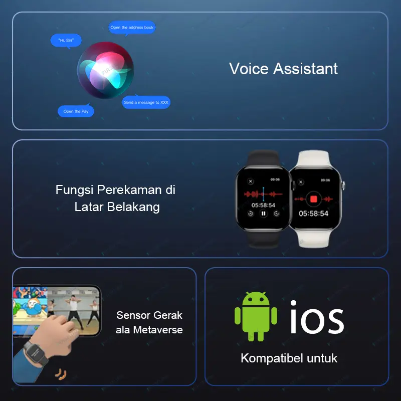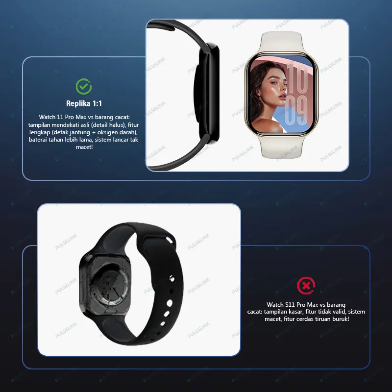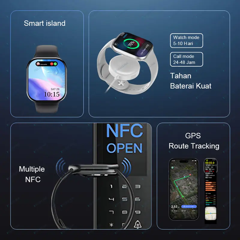 Untuk kamu yang menjalani gaya hidup modern, aktif, dan dinamis, PulseLink Smart Watch 11 Pro Max Original adalah pendamping teknologi yang sempurna untuk menunjang segala aktivitasmu sehari-hari. Dengan layar AMOLED 2.2 inci berkualitas tinggi, kamu dapat melihat semua informasi dengan sangat jelas dan nyaman, bahkan dalam kondisi pencahayaan yang minim. Fitur Bluetooth Call memungkinkan kamu berkomunikasi tanpa mengeluarkan ponsel dari saku, sangat berguna saat kamu sedang sibuk, berkendara, berolahraga, atau sedang mengerjakan tugas. Terdapat fitur NFC untuk pembayaran cashless yang cepat dan mudah di berbagai tempat, sehingga kamu tidak perlu repot membawa uang tunai atau kartu. Fitur GPS membantu kamu dalam navigasi perjalanan, melacak jarak tempuh, memantau aktivitas olahraga, dan menemukan lokasi dengan akurat, cocok untuk kamu yang suka berolahraga lari, bersepeda, hiking, atau bepergian. Jam tangan ini memiliki kemampuan waterproof yang handal sehingga aman digunakan dalam aktivitas sehari-hari tanpa khawatir kerusakan akibat air. Pengisian daya nirkabel membuat penggunaan semakin praktis dan efisien, tanpa ribet dengan kabel yang merepotkan. Desainnya yang elegan dan modern cocok untuk segala aktivitas, baik kerja, kuliah, olahraga, maupun perjalanan jauh. Cocok untuk pria dan wanita, kami juga menyediakan berbagai pilihan wallpaper gratis dengan desain menarik untuk mempercantik tampilan jam tangan agar sesuai dengan gayamu.