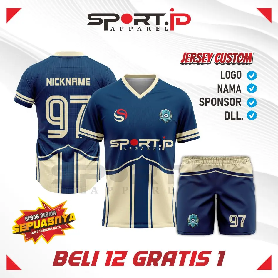 Jersey Olahraga Royal Navy Gold Elite Custom Collection Sport ID Cocok untuk Badminton Sepak Bola Voli Takraw & Futsal Bahan Premium Full Printing Size Lengkap S-5XL