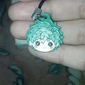 Izuku Midoriya (Deku): Menampilkan wajah Deku dengan rambut hijau khasnya, dilengkapi dengan dekorasi manik-manik bernuansa hijau dan hitam.
