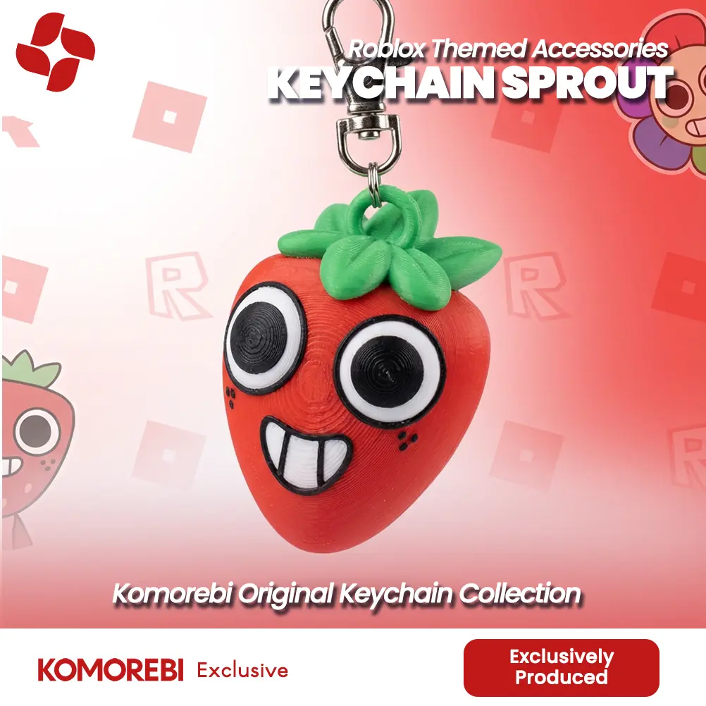 Sprout: Karakter berbentuk buah stroberi merah dengan daun hijau di bagian atas. Memiliki detail wajah yang ekspresif dengan mata besar dan senyuman yang rapi.