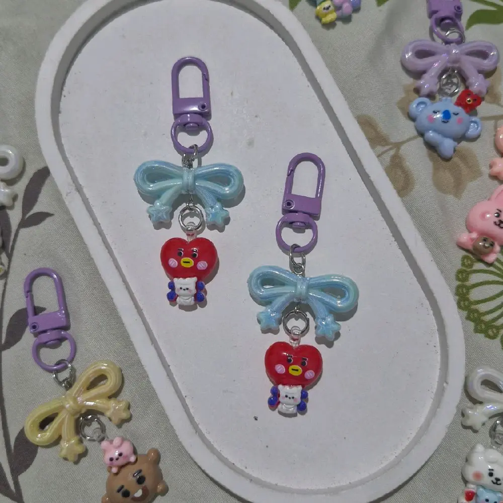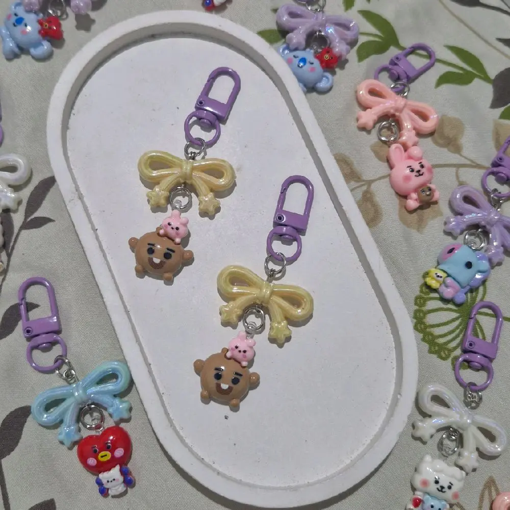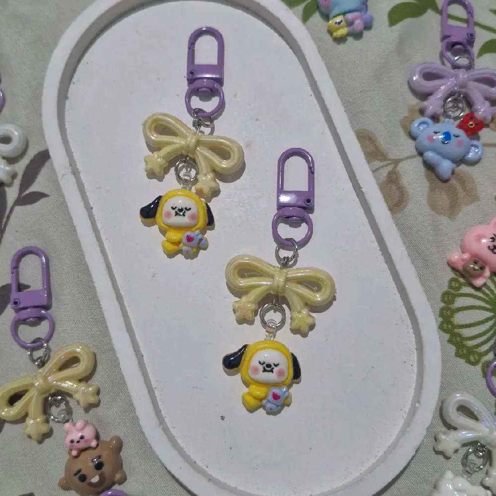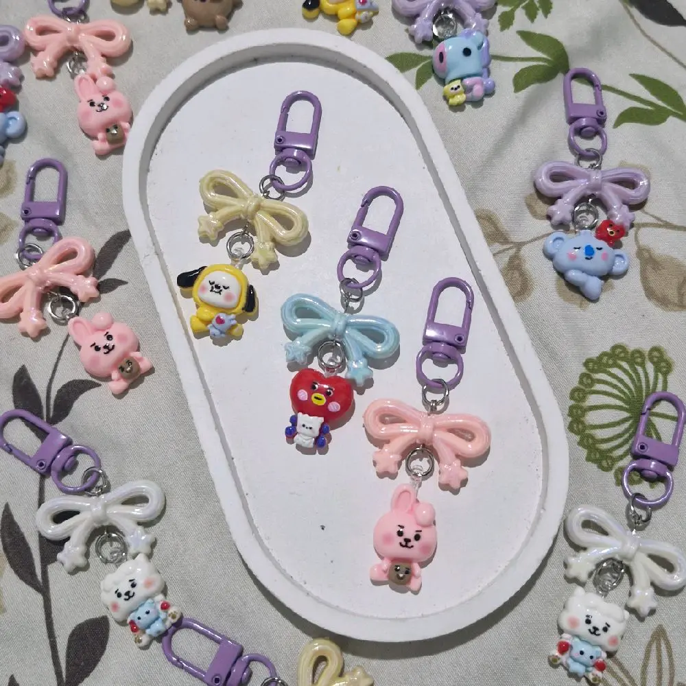 Keychain Mini versi Bt21 dengan Karakter Lucu dan Warna Cerah untuk Dekorasi Tas dan Kunci
