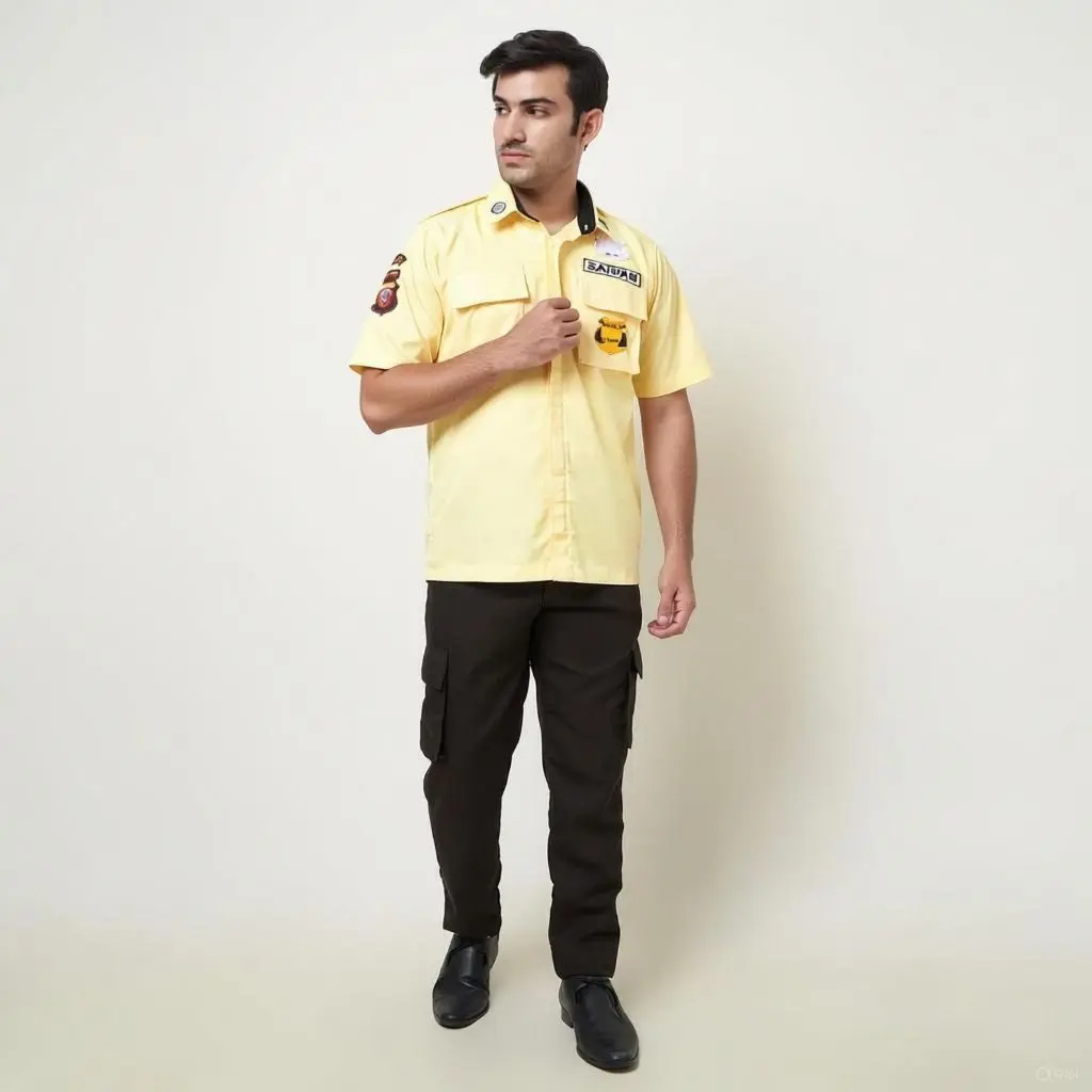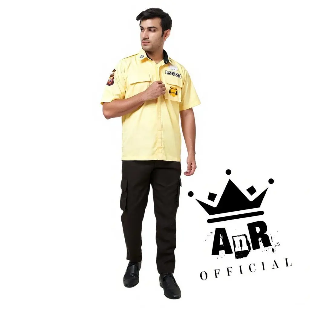 Seragam satpam bahan American drill dan Guarda Exlusiv Reaktif, bahan langsung terasa Tebel dan adem begitu dipakai dan ga panas lebih tebal. Cocok digunakan untuk penjagaan di iklim tropis seperti Indonesia.