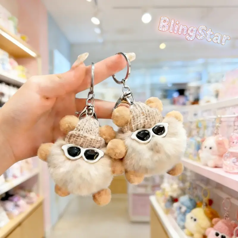 *Gantungan Kunci Boneka Bulu Imut dengan Kacamata*