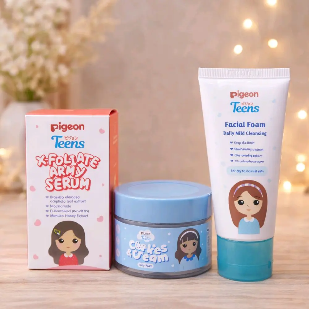 Pigeon Paket Skincare Lengkap Untuk Semua Jenis Kulit & Anak-Anak Termasuk Moisturizer, Daily Mild, Serum, Jelly Glow Sleeping Mask, Acne Care, & Sunscreen
