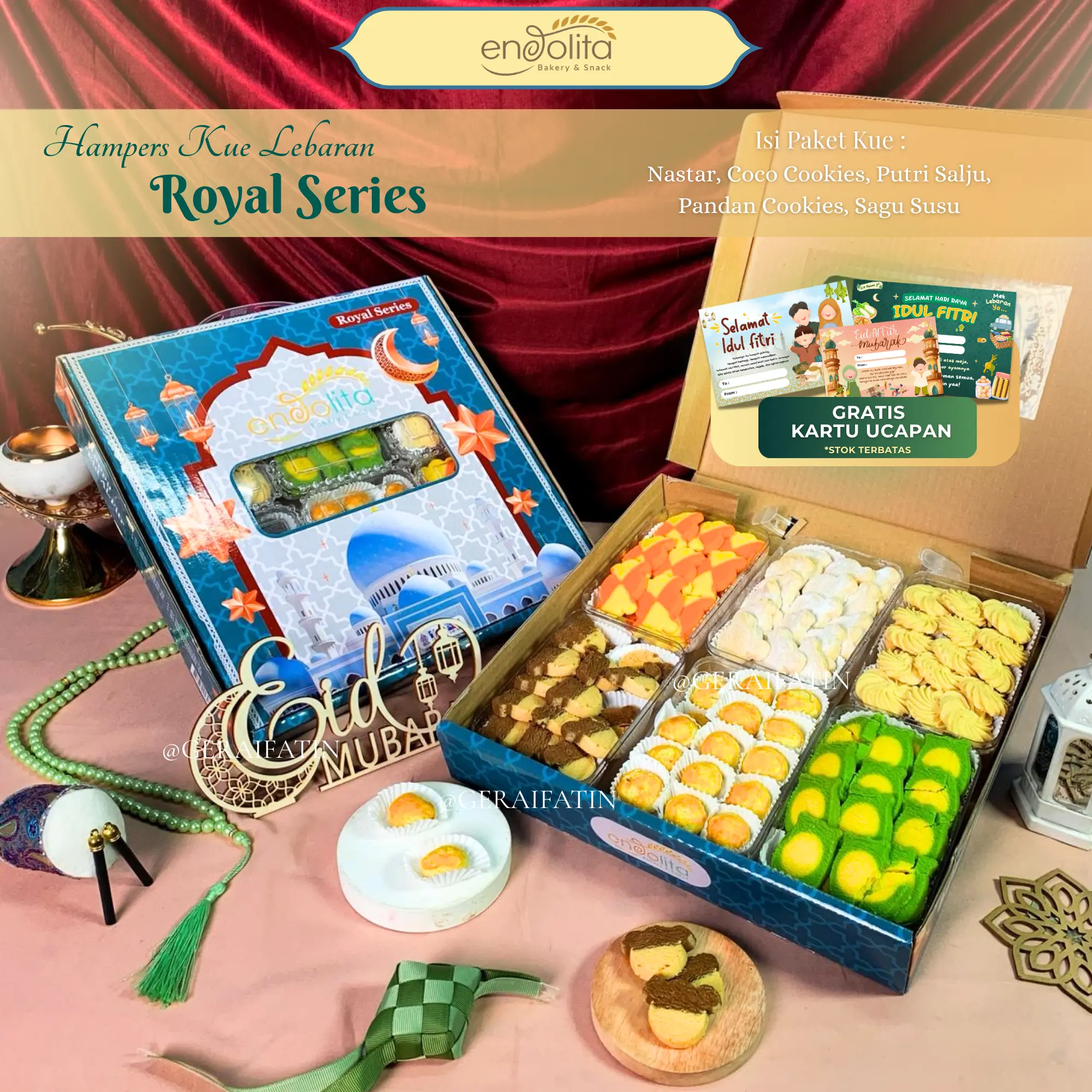 1 Box 6 Toples Kue Kering Endolita Royal Series - Parcel lebaran Kue Kering Nastar,Putri Salju,Semprit - Hampers Ramadhan Produksi 2026 - Parcel lebaran Cookies Cemilan Snack Wafer Expired 2027
