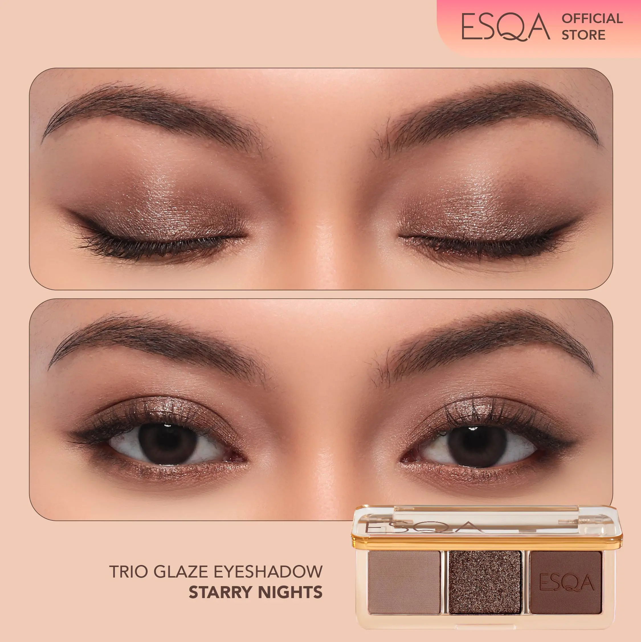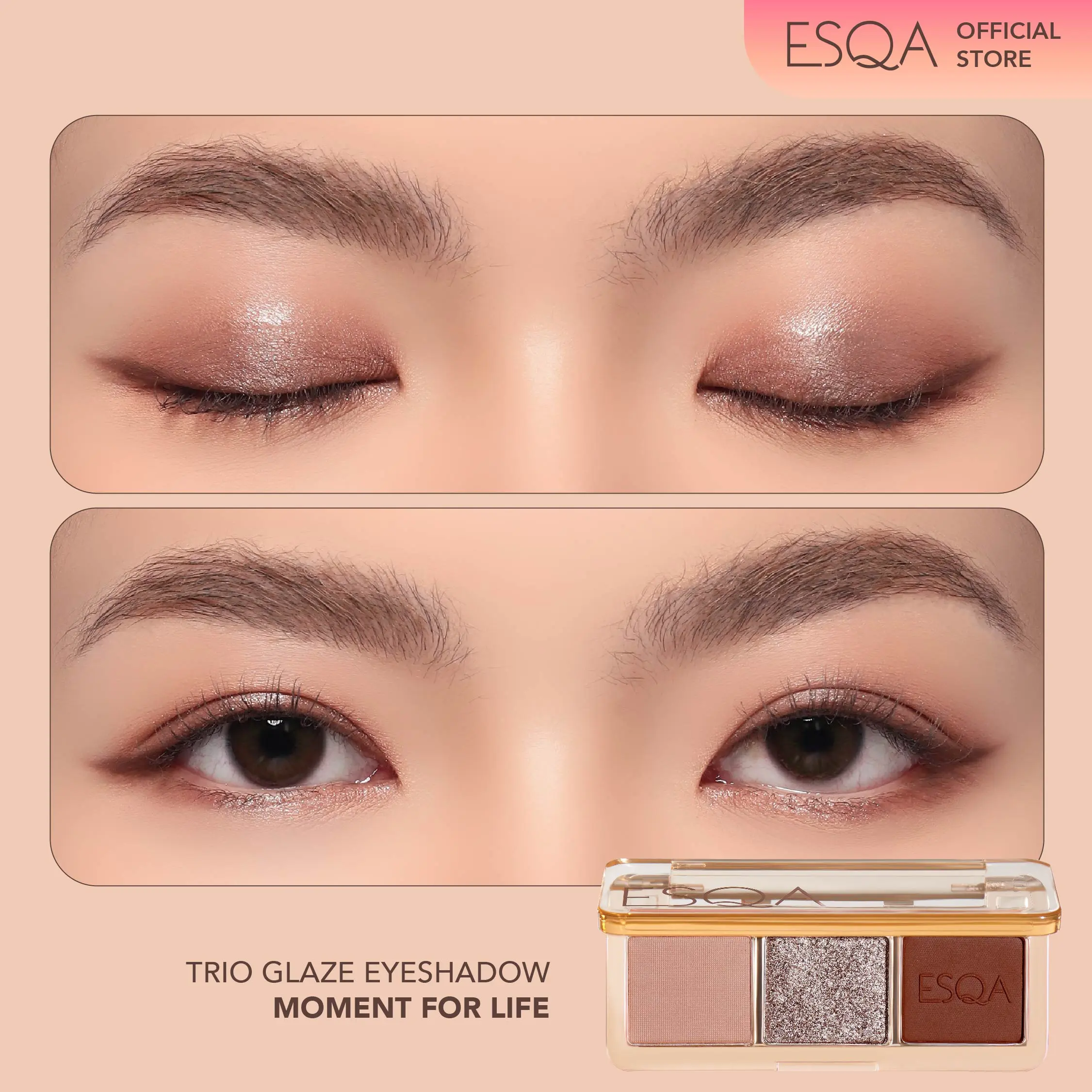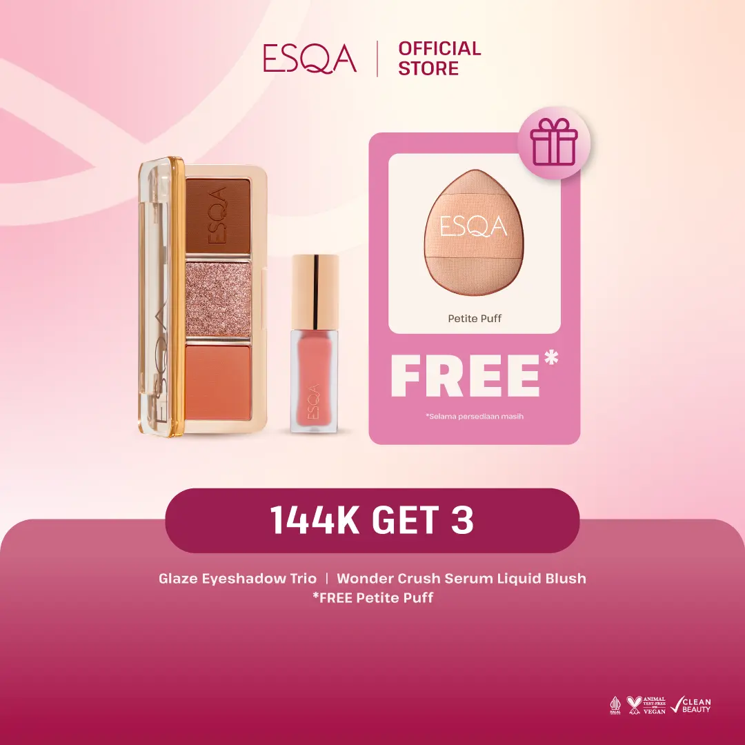 [144K GET 3] - ESQA Glaze Eyeshadow Trio + Liquid Blush + Free Petite Puff