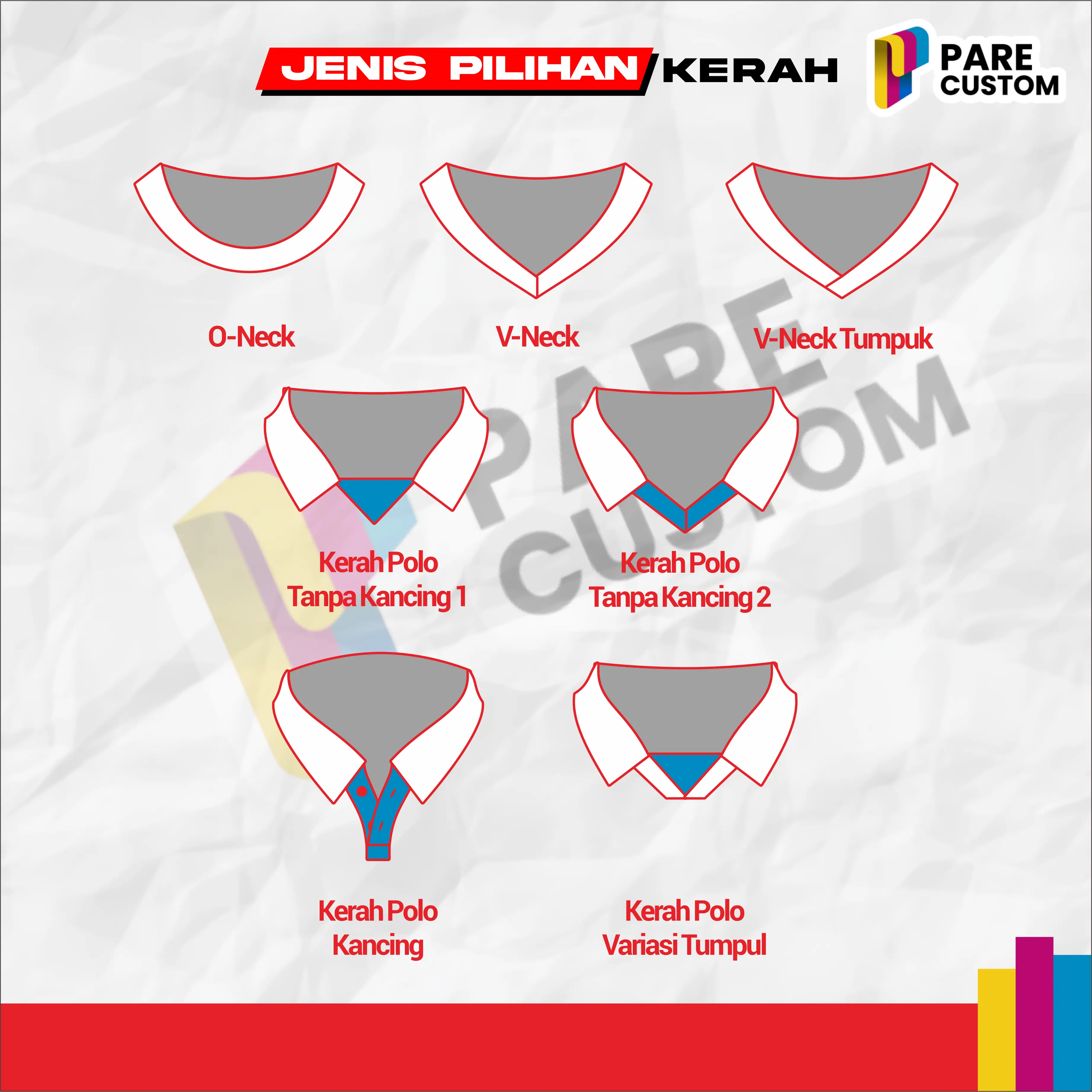 · Pilihan Model Kerah Lengkap: O-Neck, V-Neck, Shanghai, Polo, Raglan, dll.