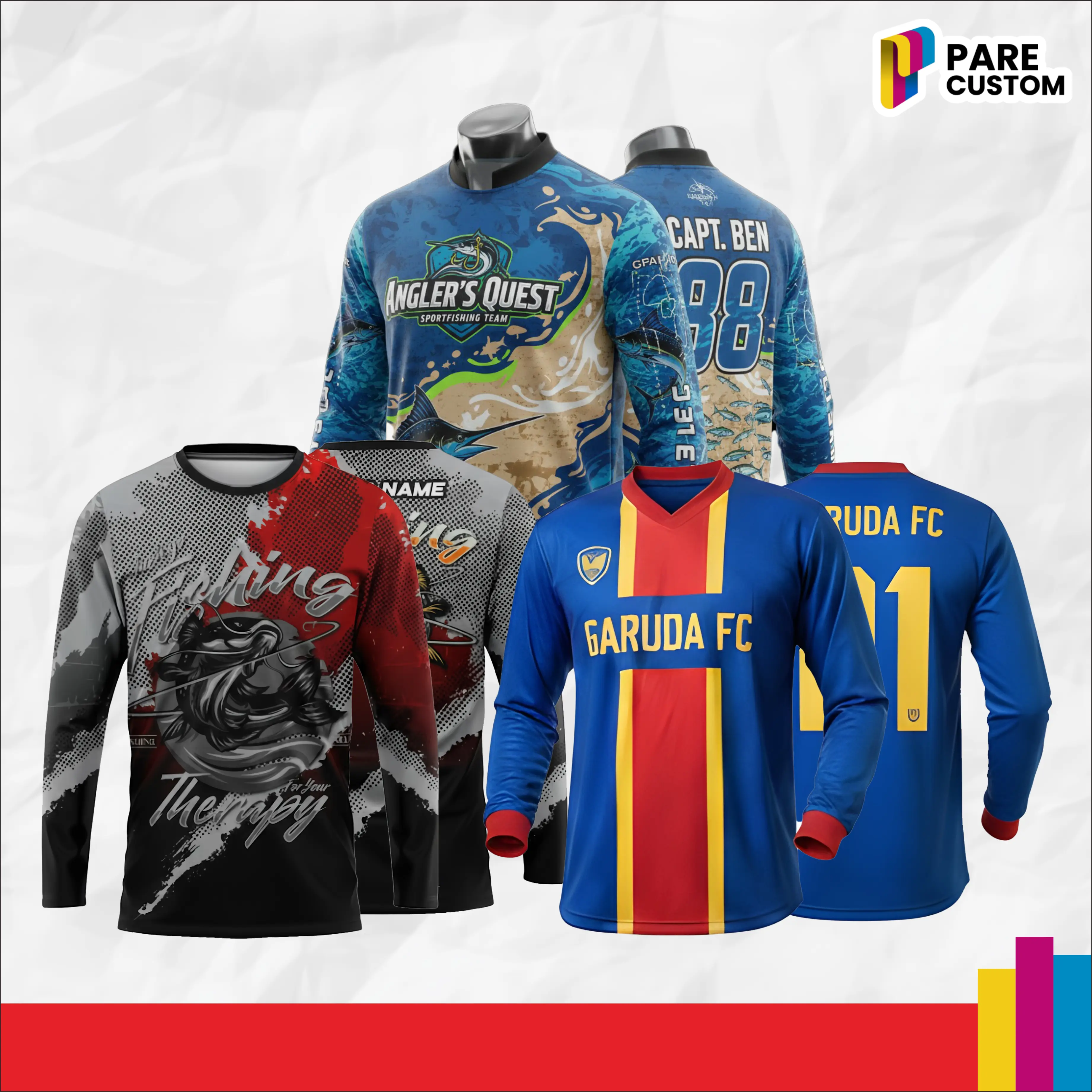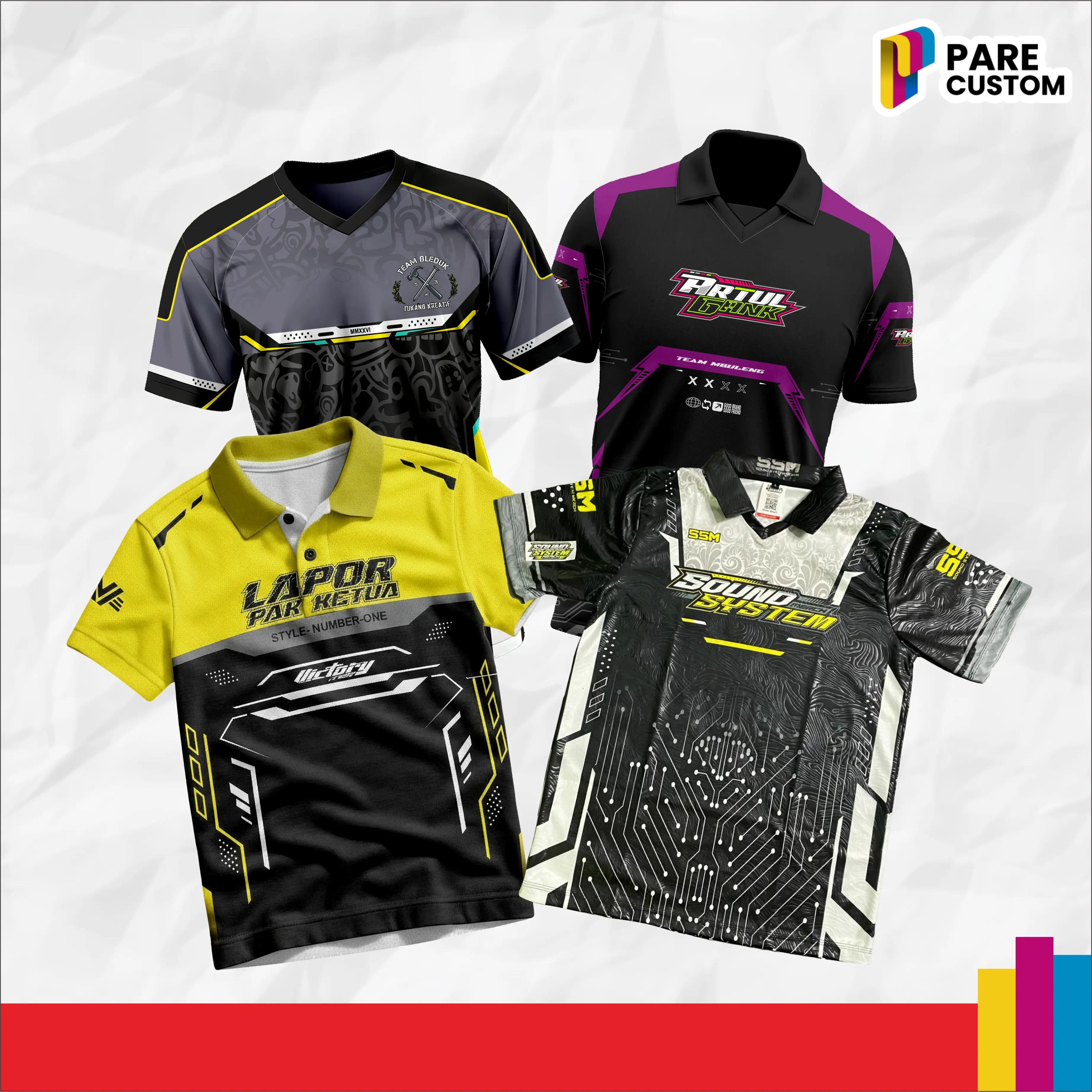 Bikin jersey sesuka kamu tanpa minimal order! Cocok untuk futsal, sepeda, volley, esports, hingga acara komunitas.