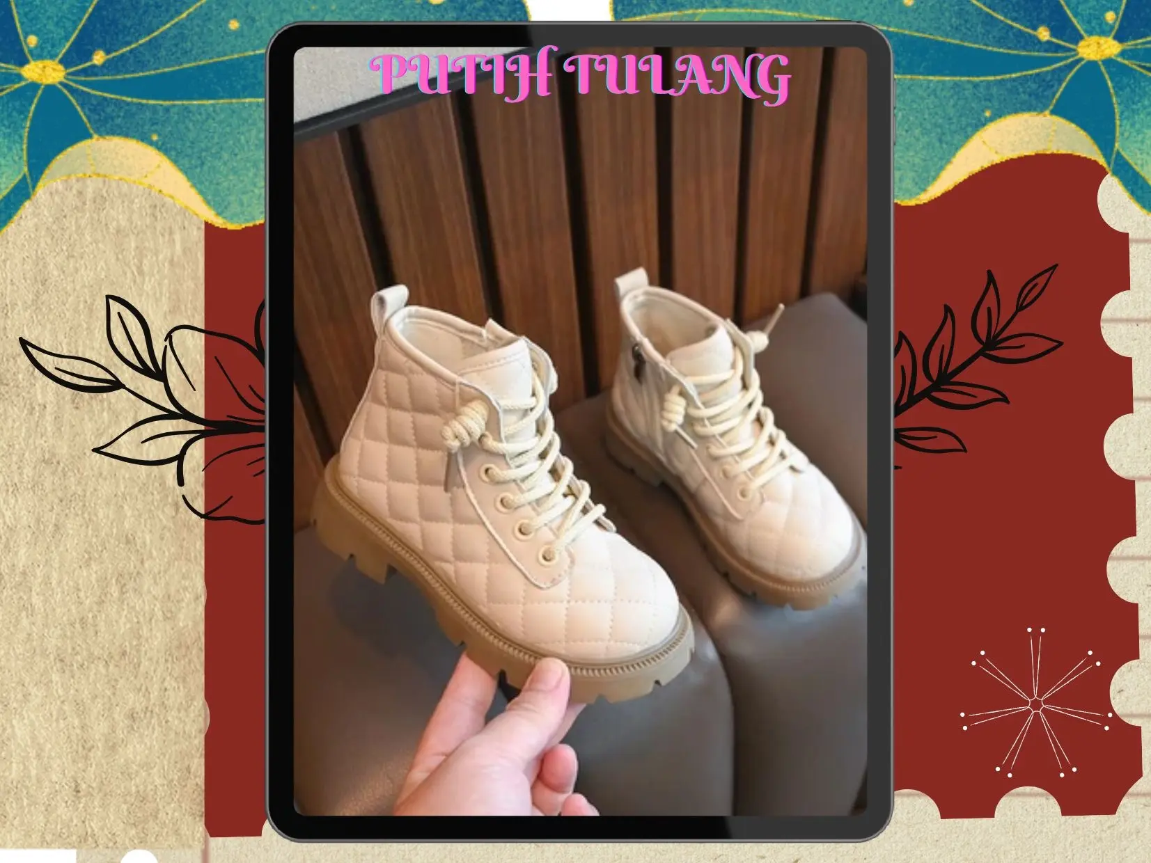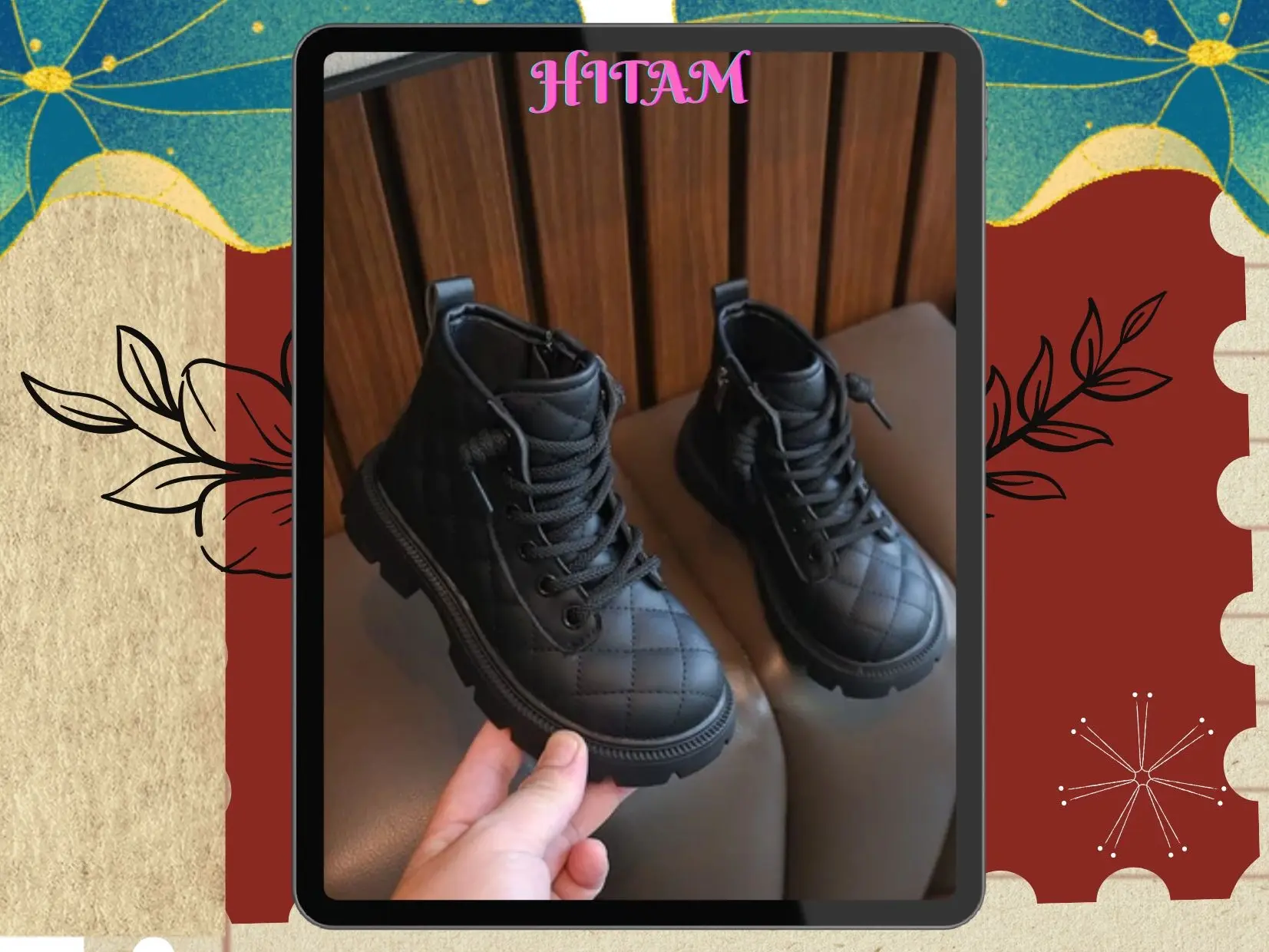 5. 6929 NEW Sepatu boot anak motif kotak-kotak 3D kualitas premium