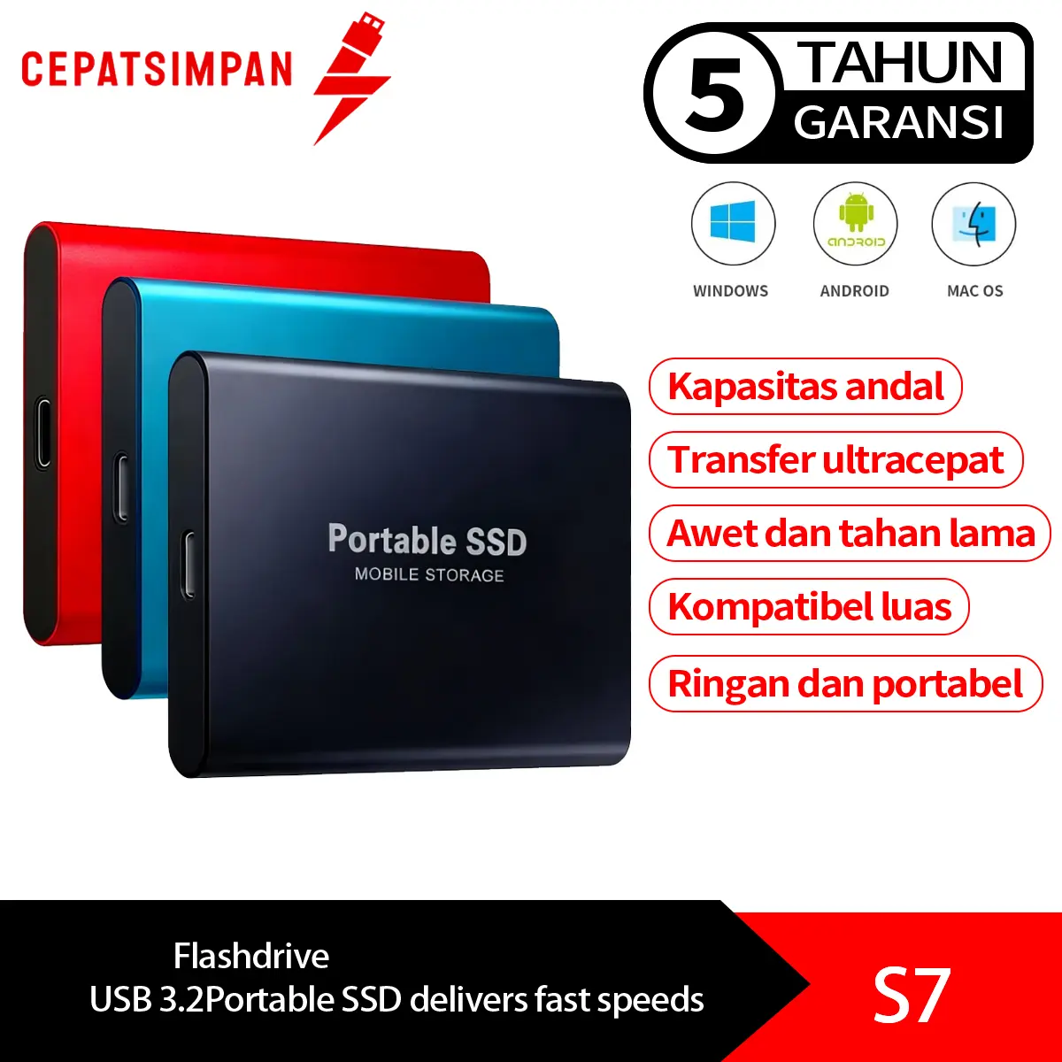 S7 Portable External Storage (1TB/2TB/4TB) – USB 3.1 & Type-C & Micro, Ultra-Slim Shockproof, Stable Portable Storage Compatible with Windows, Mac & Linux