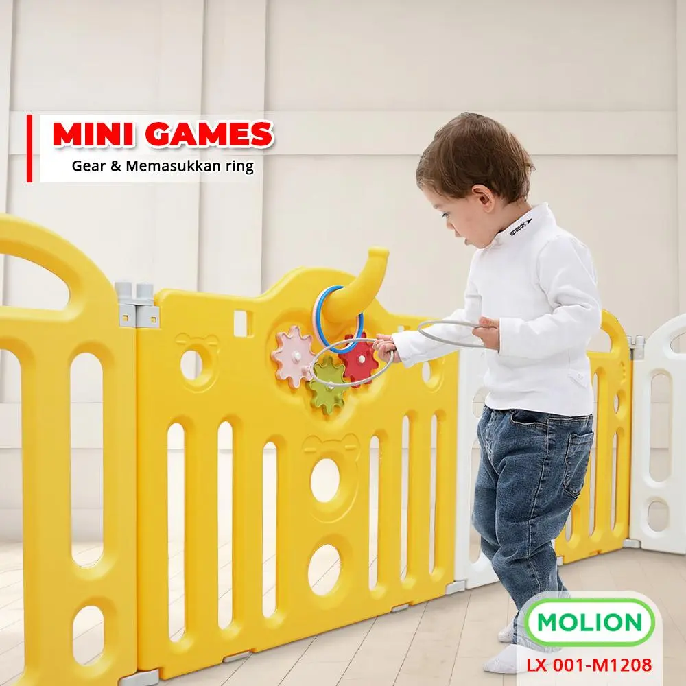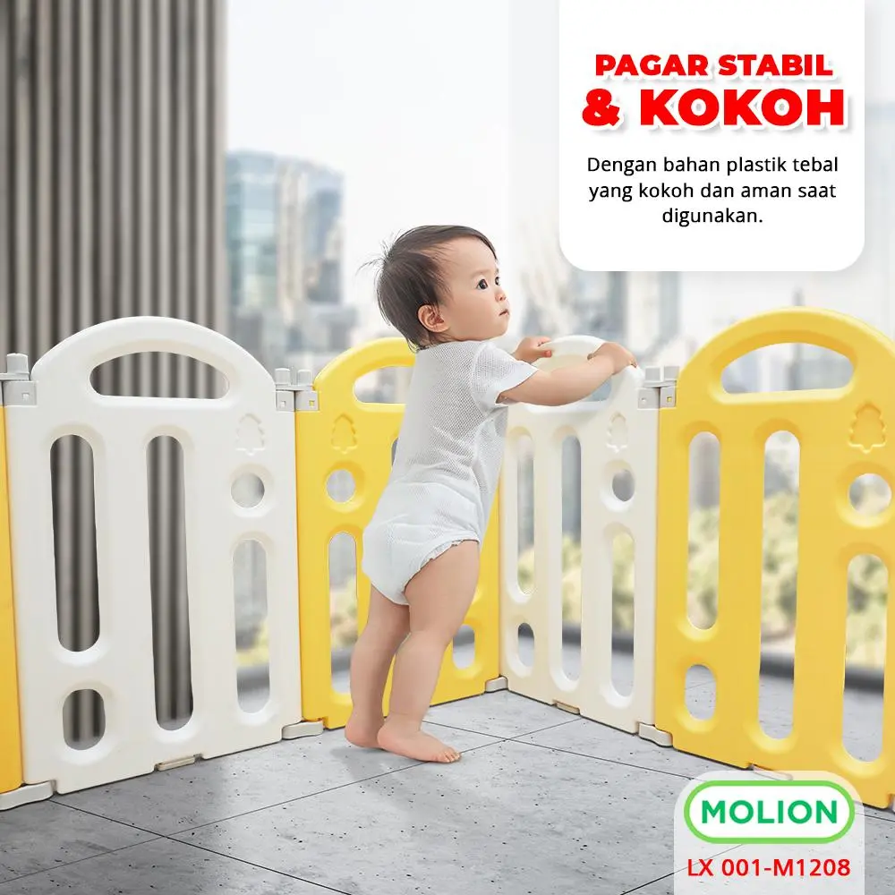 Dengan Playfence ini anak kecil dapat terhindar dari bahaya atau hal-hal yang tidak diinginkan. Terusun dari pembatas-pembatas yang mudah untuk digabungkan, sehingga memudahkan Anda dalam pemasangan. Selain itu tiap pagar dan pintu sudah memiliki lubang pegangan pada bagian atas pula.