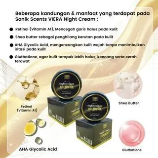 3 VIERA Night Cream with Retinol Krim Malam Anti Aging:RETINOL, SHEA BUTTER BUTYRO SPERMIUM PARKII, AHA GLYCOLIC ACID