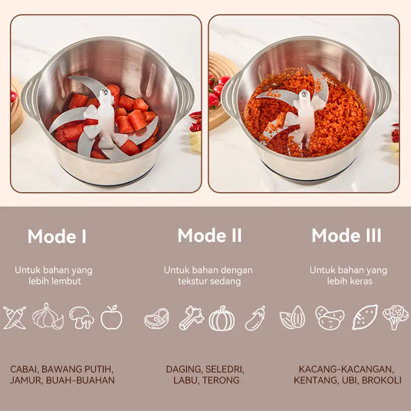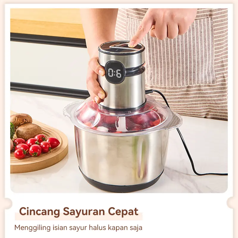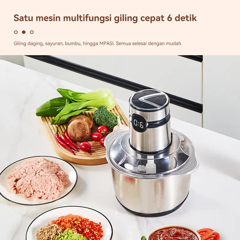 5. Penggiling/blender daging rumah tangga untuk daging, sayuran, dan buah-buahan, kapasitas 2 liter.