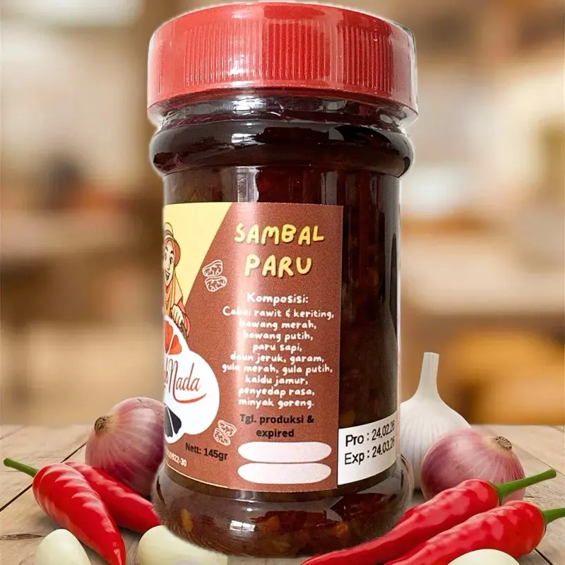 Sambal kemasan ini dibuat dari bahan-bahan segar dikombinasi dengan paru sapi. Sambal ini memiliki cita rasa pedas, gurih asin, manis yang pas dan diperkaya rasa nikmat dari gurihnya paru sapi. Dimakan bersama nasi hangat dan lauk lain ataupun lalapan sayuran beh makin nikmat rasanya.