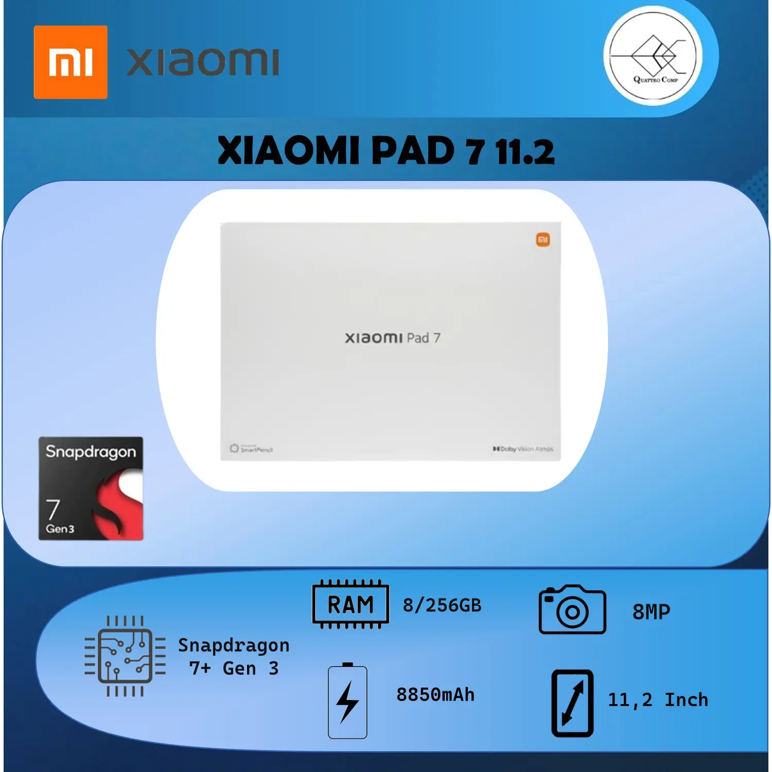 Xiaomi Pad 7: Layar Luar Biasa XIAOMI PAD 7 hadir dengan layar 11.2 inci, resolusi 2136 x 3200 piksel. Menggunakan teknologi IPS LCD, menampilkan 68B warna, refresh rate 144Hz, HDR10, dan Dolby Vision. Dengan kecerahan 800 nits, pengalaman visual Anda menjadi lebih hidup. Layar ini memberikan pengalaman visual yang luar biasa untuk penggunaan sehari-hari. Performa Unggulan Memori 8 GB RAM dan 256 GB ROM, sistem operasi Android 15, HyperOS. Prosesor Qualcomm SM7675-AB Snapdragon 7+ Gen 3 (4 nm) dengan 8 core dan GPU Adreno 732. Performa ini memastikan multitasking yang lancar dan gaming yang memukau. Baterai 8850 mAh dan berat 500 g, paduan ideal untuk mobilitas dan kinerja. Kamera dan SIM Kamera belakang 13 MP f/2.2 (wide) 1/3.06' 1.12µm PDAF; depan 8 MP f/2.3 (wide) 1/4.0' 1.12µm. Tidak ada SIM. Garansi resmi menambah kepercayaan. Semua fitur ini dirancang untuk pengguna yang menginginkan kinerja dan kualitas visual terbaik.