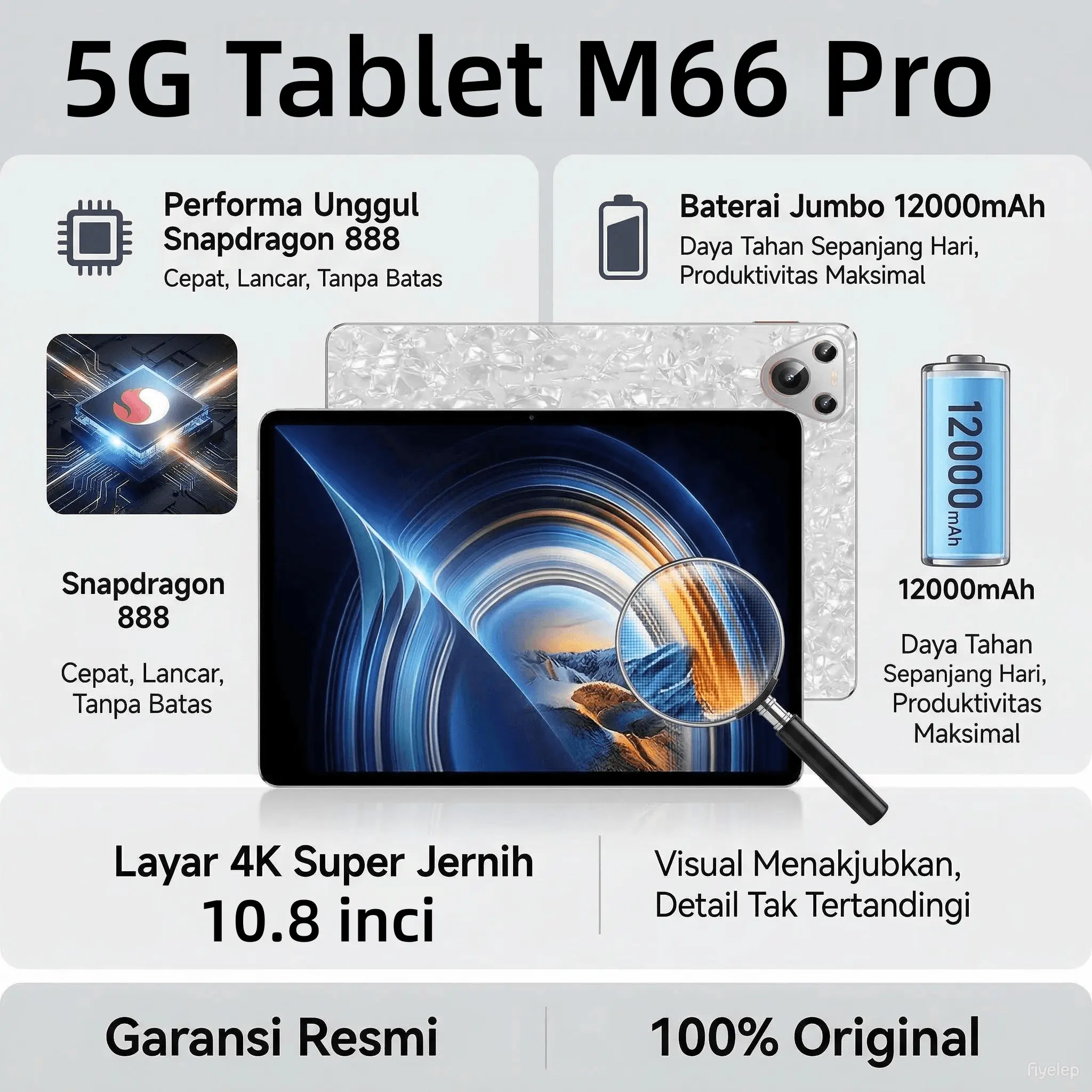 (54) 5G Tablet M66 Pro Snapdragon 888 10.8'inci [16GB+1TB] | Pengalaman Pro Layaknya PC | 120Hz OLED Real Color FullView Display | Ultra-tipi Bluetooth Layar tablet