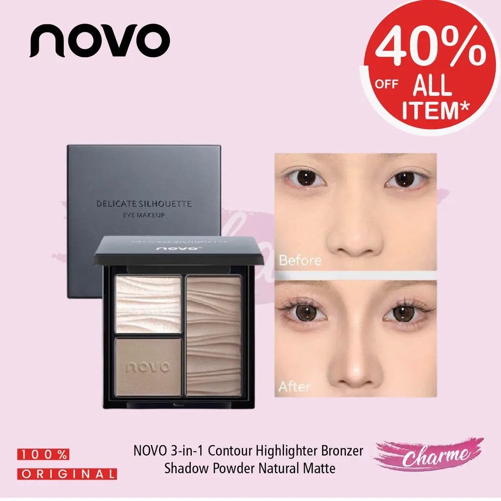 NOVO 3-in-1 Contour Highlighter Shadow Bronzer Face Palette adalah pilihan tepat untuk menciptakan riasan yang profesional dan sculpted, dengan hasil akhir yang natural dan memukau.