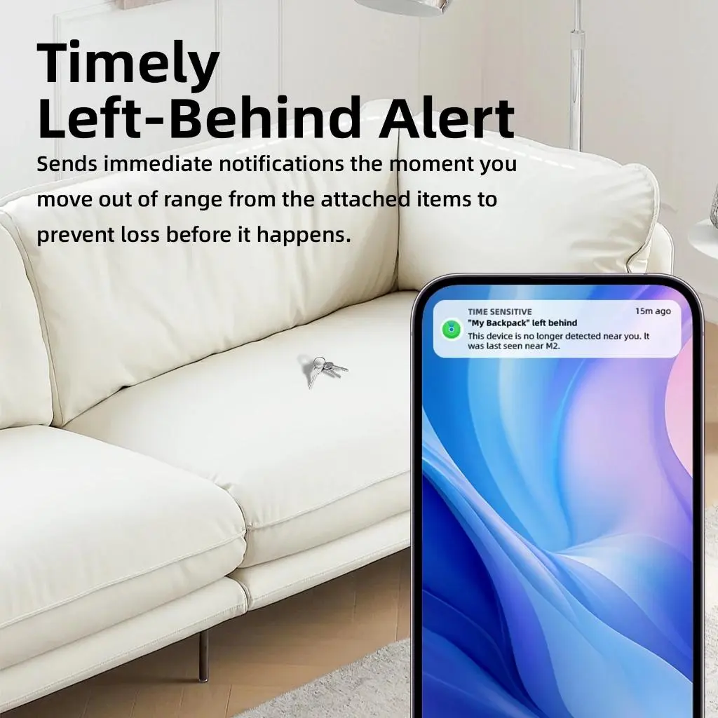 4. Mode Pengingat Tertinggal & Hilang: Jika barang Anda dengan label pelacak kami tertinggal dan terputus dari Bluetooth perangkat iOS Anda, aplikasi Find My akan langsung mengirimkan notifikasi bahwa barang Anda telah hilang. Saat Anda mengatur mode hilang dan menyimpan informasi kontak Anda, pelacak kunci memungkinkan perangkat di sekitar untuk mengakses informasi kontak Anda dan memberi Anda lokasi label ini dari jarak jauh.