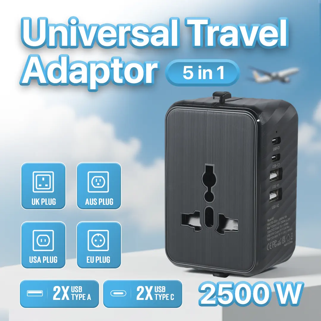 Spesifikasi Lesse Universal Travel Adaptor Colokan Charger Adapter USB 2500W - INU167