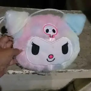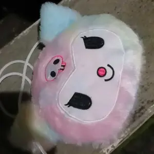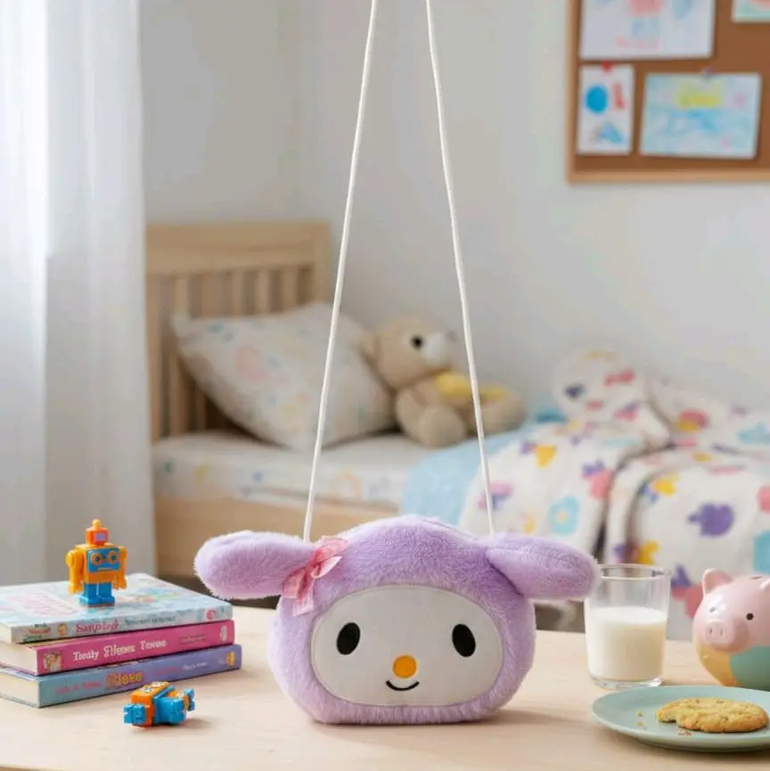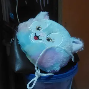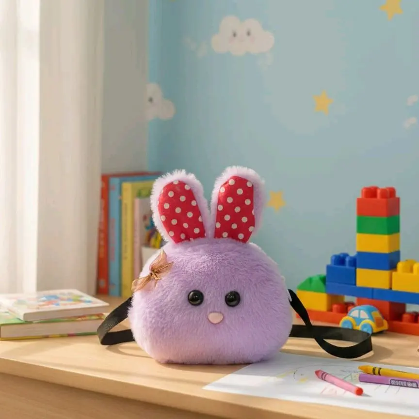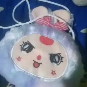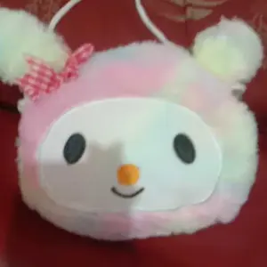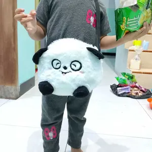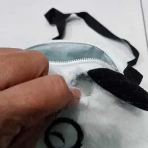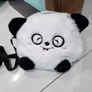 Tas slempang boneka terbuat dari bahan bulu halus.