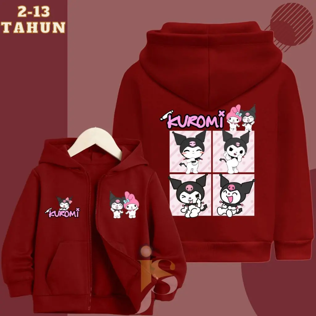 5. Jaket Anak Perempuan Kuromi Sanrio Hoodie Zipper My Melody Cinnamoroll Lucu 3-13 Tahun Sweater Anak Cewek Viral