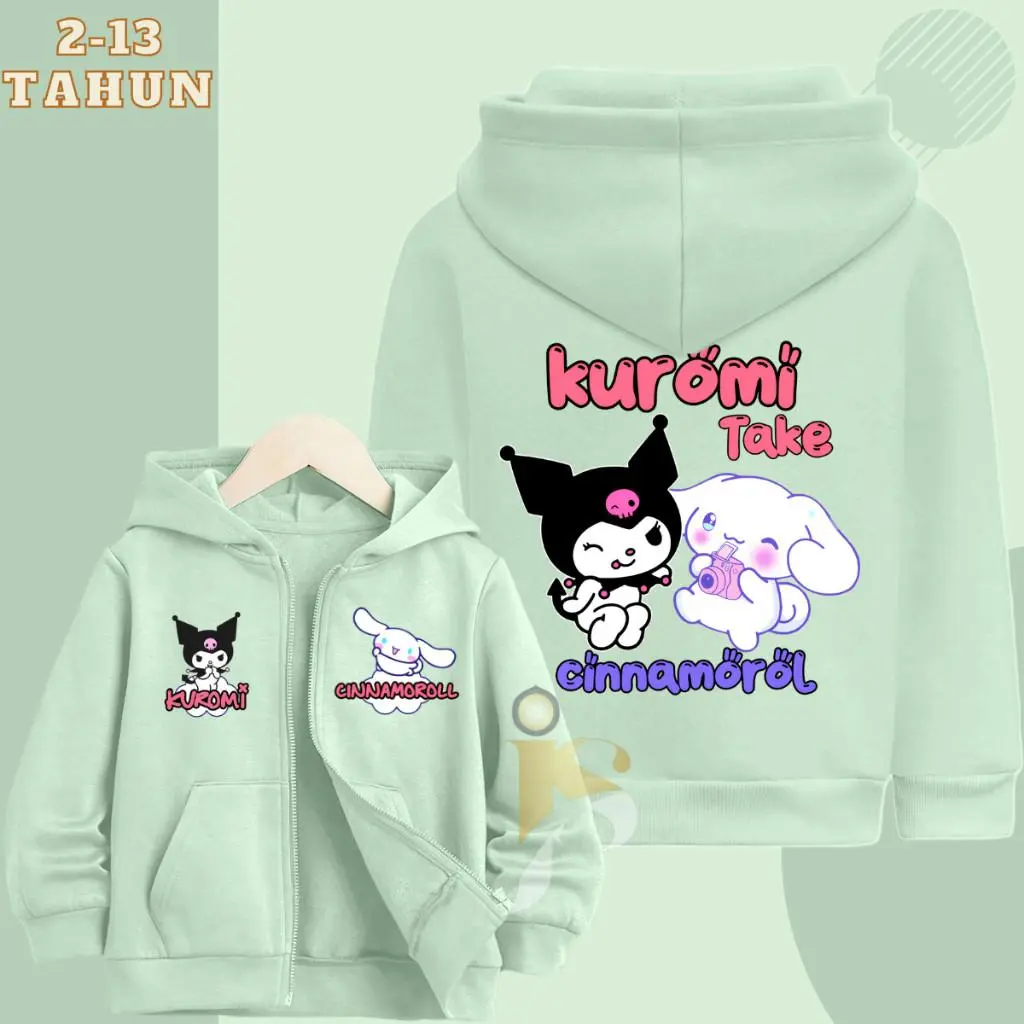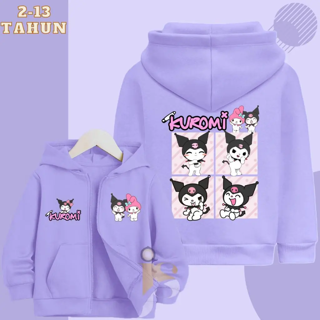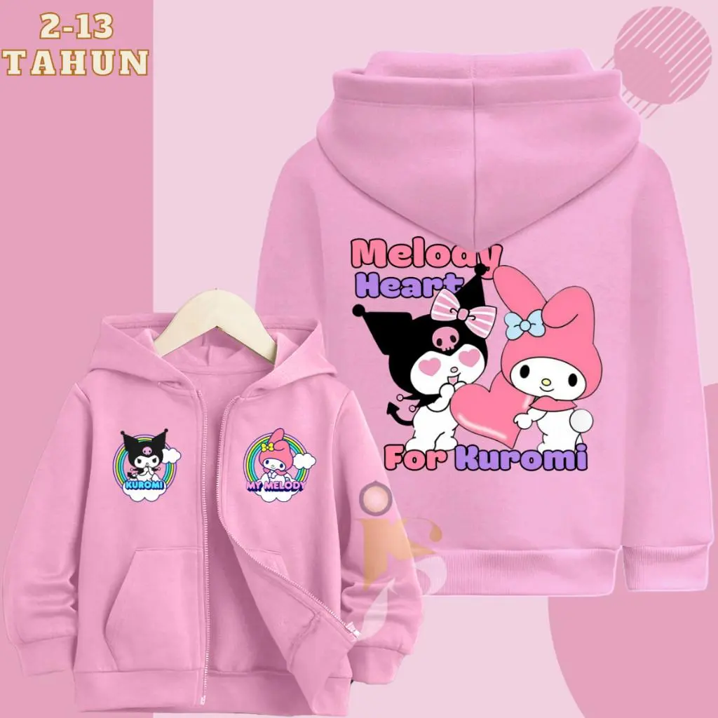 Jaket Anak Perempuan Kuromi Sanrio Hoodie Zipper My Melody Cinnamoroll Lucu 3-13 Tahun Sweater Anak Cewek Viral