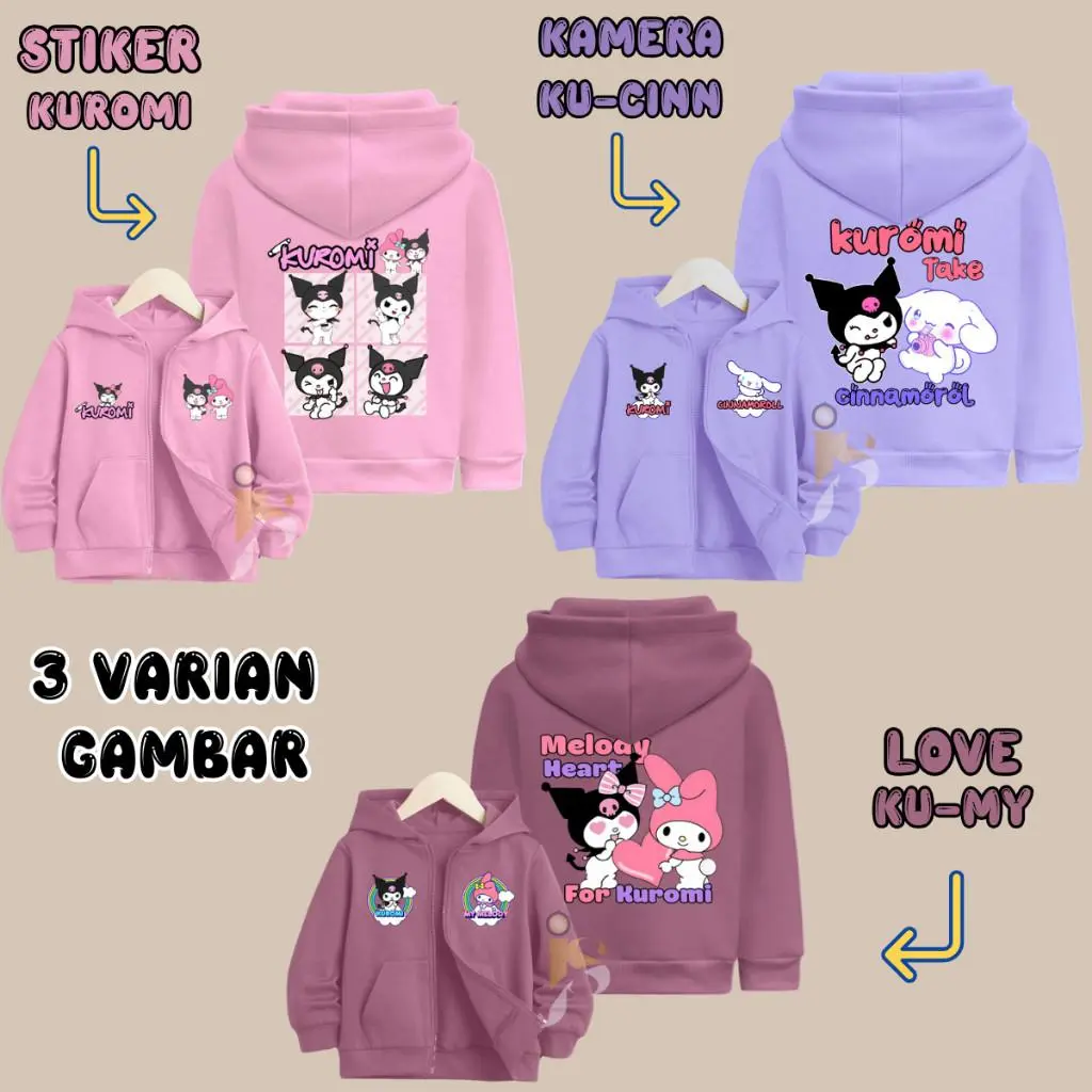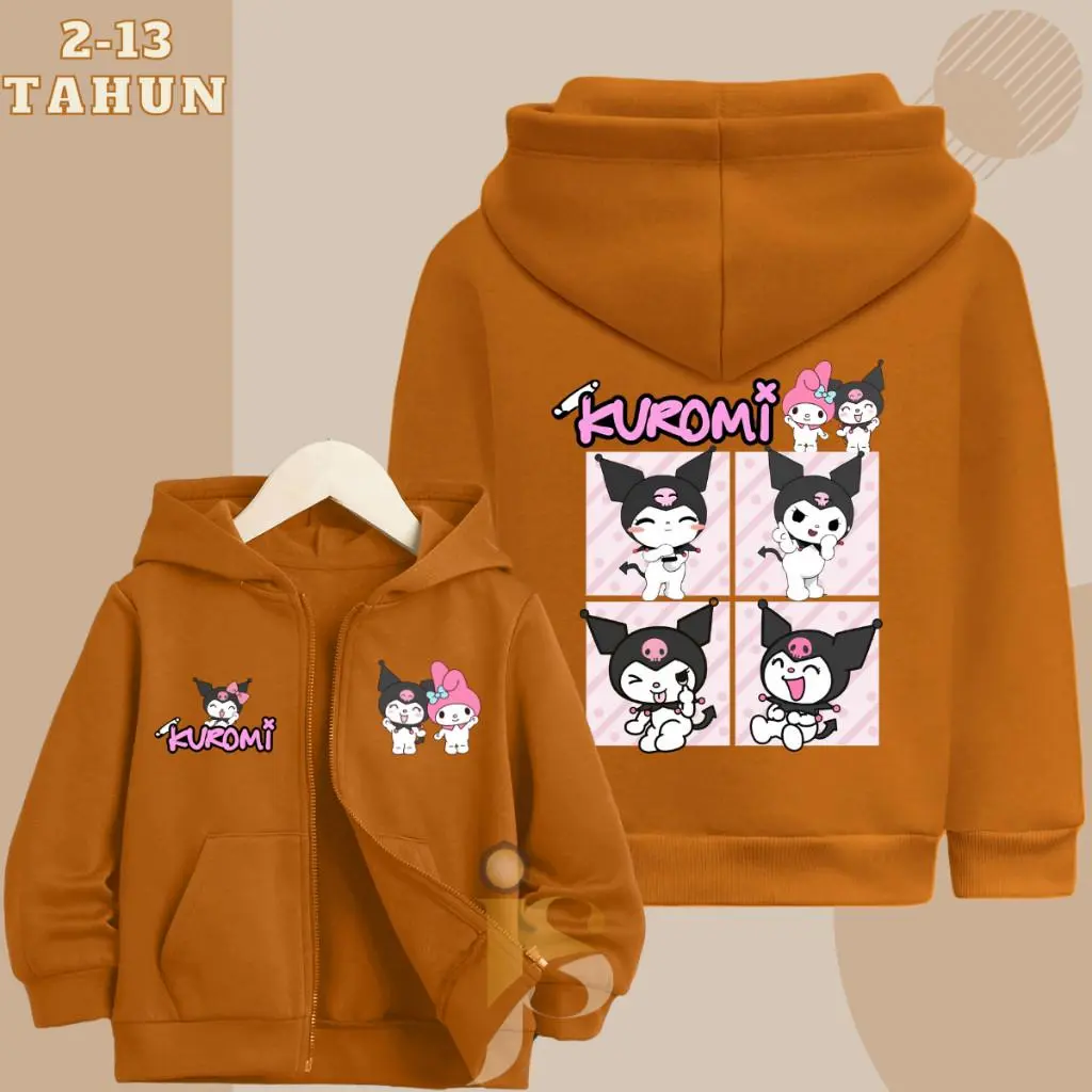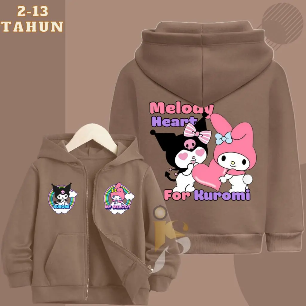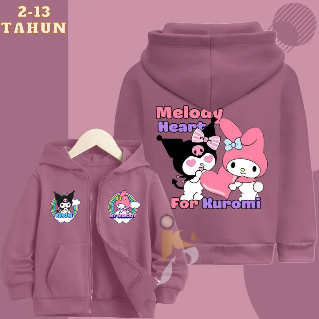 Jaket Anak Perempuan Kuromi Sanrio Hoodie Zipper My Melody Cinnamoroll Lucu 3-13 Tahun Sweater Anak Cewek Viral