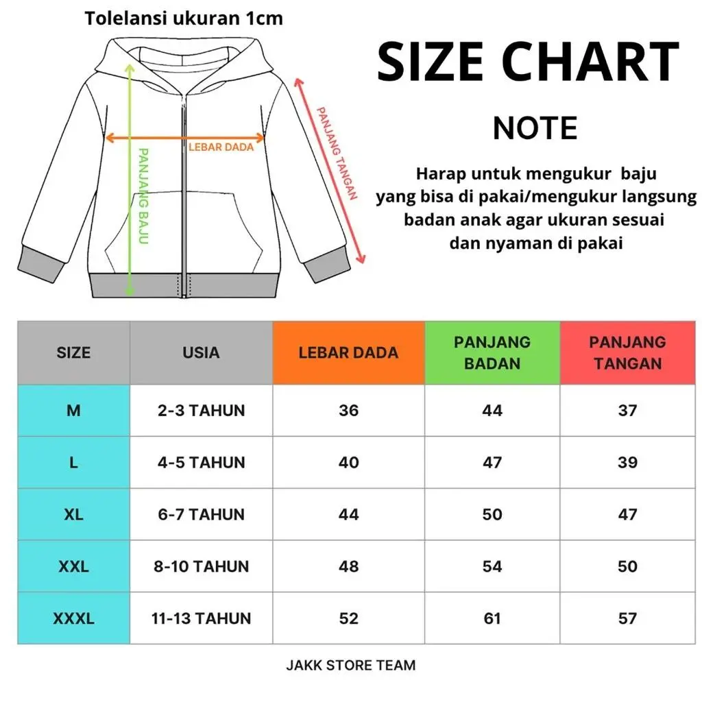 Material : Thailand ( LEBIH LEMBUT ) SABLON PREMIUM DIGITAL DTF ( TIDAK AKAN LUNTUR ) Size M 3-4 thn MAX BB 15kg size L 4-5 thn MAX BB 17kg size XL 6-7 thn MAX BB 27kg Size XXL 8-10 thn MAX BB 33kg Size XXXL 11-13 Thn Max BB 45 kg NOTE : USIA HANYA PERKIRAAN Tidak Menjadi Patokan Utama ya ka !! Karena Tinggi Dan Berat Anak Berbeda-Beda Jaminan Order Dikirim Di Jam Yang Sama !! ( SIZE CHART / UKURAN ADA DI FOTO ) Contoh : Order Masuk Jam 09.00 pagi Maka Orderan akan dikirim Maximal Jam 16:00 Di Hari yang sama Pada jam Kerja Kita. Kecuali Minggu dan Tanggal Merah, Orderan dikirim Keesokan Harinya. Order Banyak Nego Halus Pengiriman Setiap Hari Kecuali Minggu dan Tanggal Merah Open Chat pukul 09.00 s.d 21.00 ( Lebih dari pukul 21.00 dibales keesokan harinya ) Kami Online Shop Bandung Ulasan Bintang 5 dari Anda Adalah Support Berharga Bagi kami, Jika Ada Keluhan Mohon untuk Inbox/DM kita ya Ka ! #SweaterAnak #SweaterHoodie #onlineshopbandung #hoodieAnakmurah #Fashion #BajuAnak