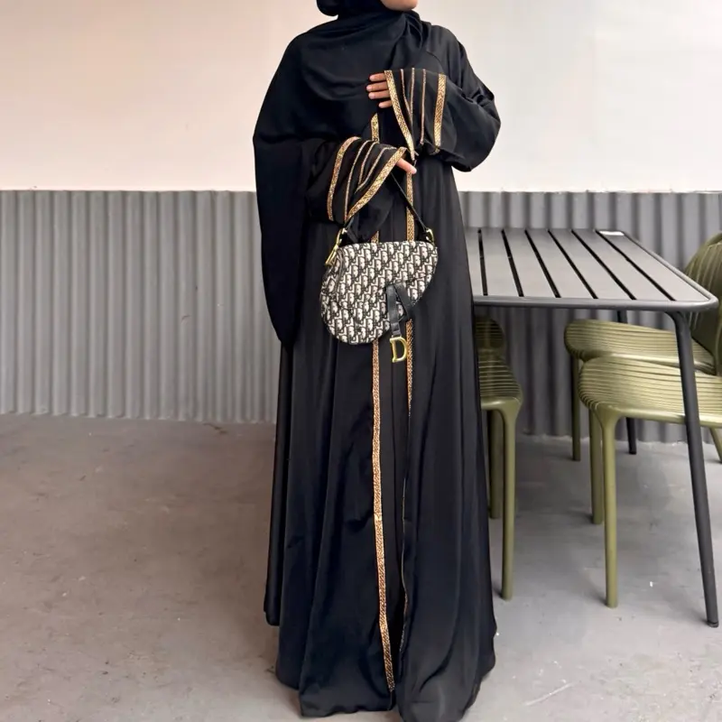 Abaya Lira Original Saudi dengan Detail Bordir Elegan dan Desain Klasik untuk Tampilan Mewah