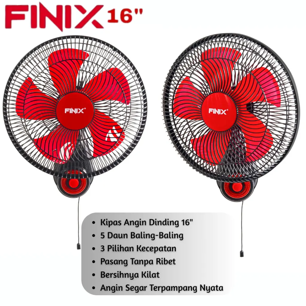 FINIX - Kipas Angin Dinding 16 Inchi 5 Daun Baling-Baling 3 Kecepatan Angin Kencang Bergaransi