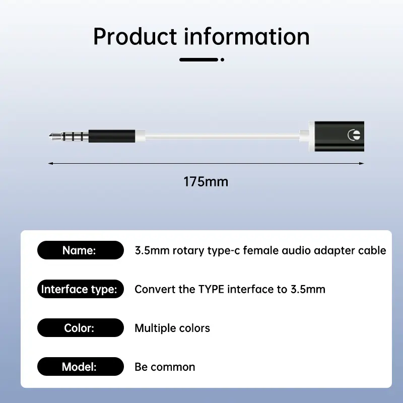 Desain: Adapter audio lubang bulat tipe-c ini memungkinkan Anda mendengarkan musik favorit Anda menggunakan headphone kabel 3,5mm dan menghubungkannya ke ponsel dan tablet dengan adapter jack headphone 3,5mm.