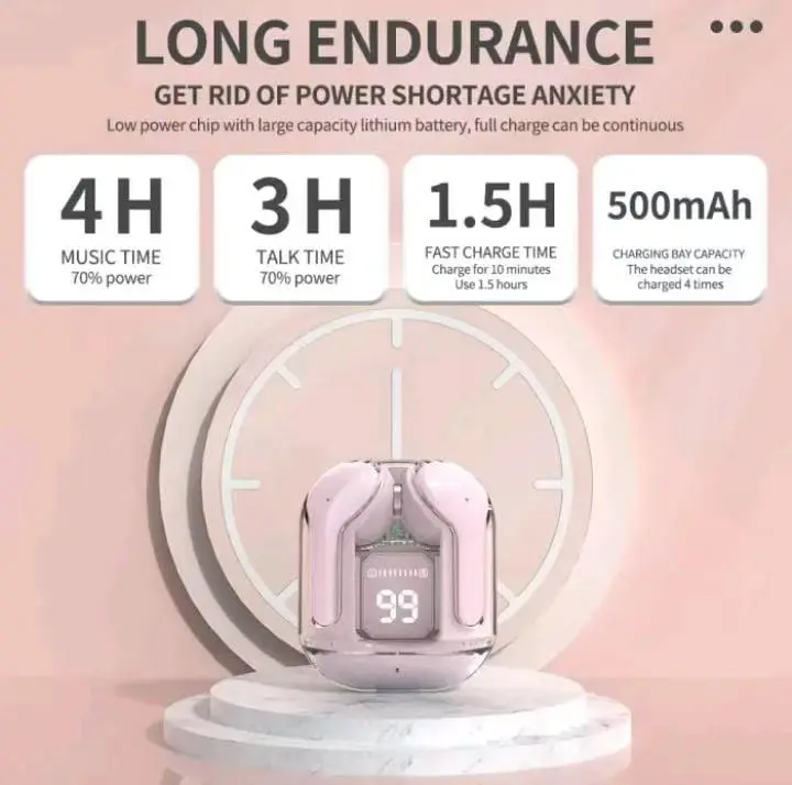 5. Waktu penggunaan: total 60 jam (digunakan dengan kotak pengisian daya)