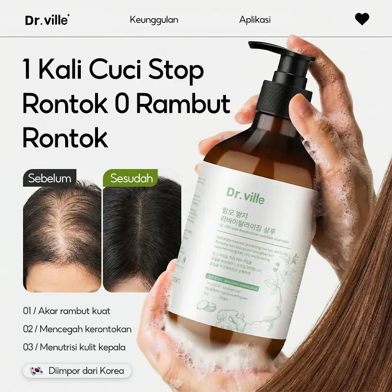 Jangan biarkan kepercayaan dirimu rontok! Dr.ville Shampoo Anti Rontok & Volumizing hadir sebagai solusi cerdas untuk kamu yang mendambakan rambut kuat, tebal bervolume, dan berkilau alami tanpa rasa lengket.