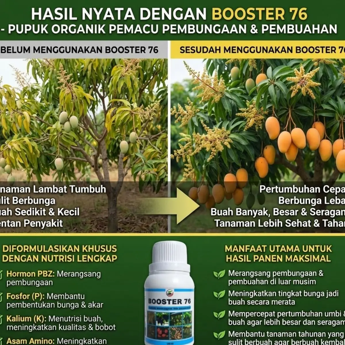 Pupuk Sintesis Booster 76 Adalah produk unggulan yang dirancang khusus untuk meningkatkan kesuburan tanah dan pertumbuhan tanaman secara alami. Pupuk ini terbuat dari bahan-bahan organik alami yang diolah dengan teknologi modern untuk memastikan kualitas dan efektivitasnya.