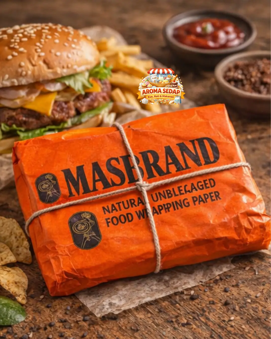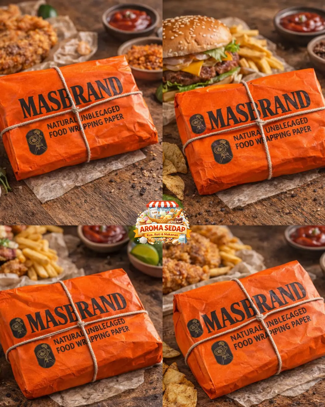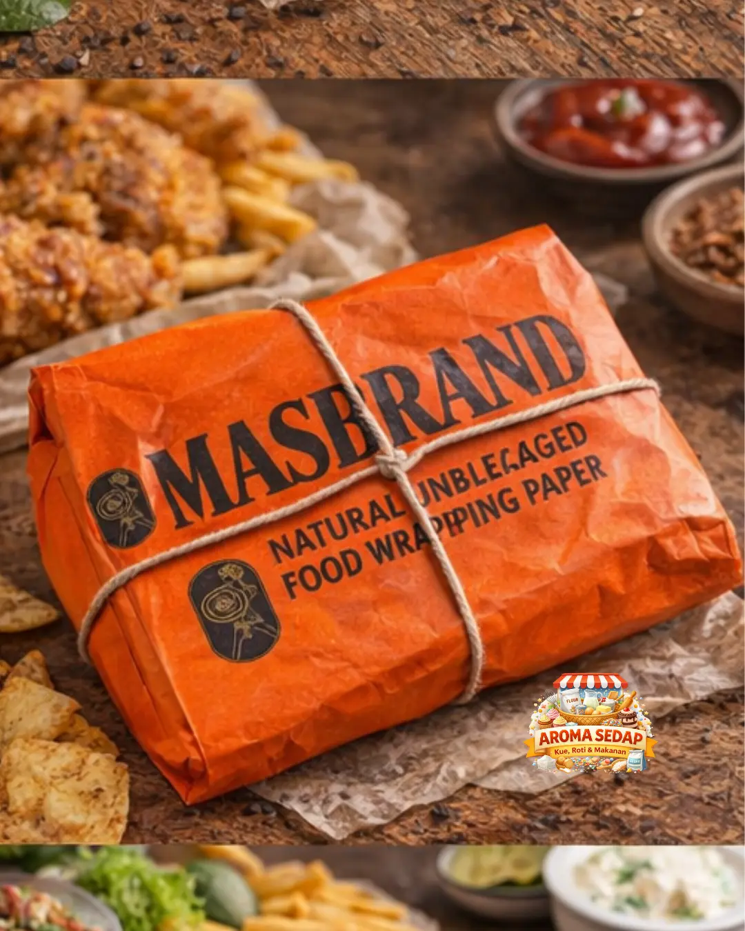 ·Kertas merang pembungkus MASBRAND motif, ideal untuk keperluan pembungkus makanan. 🍽️